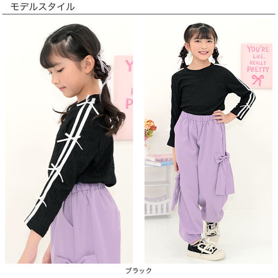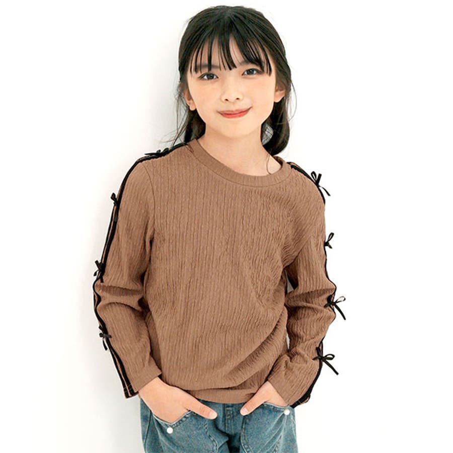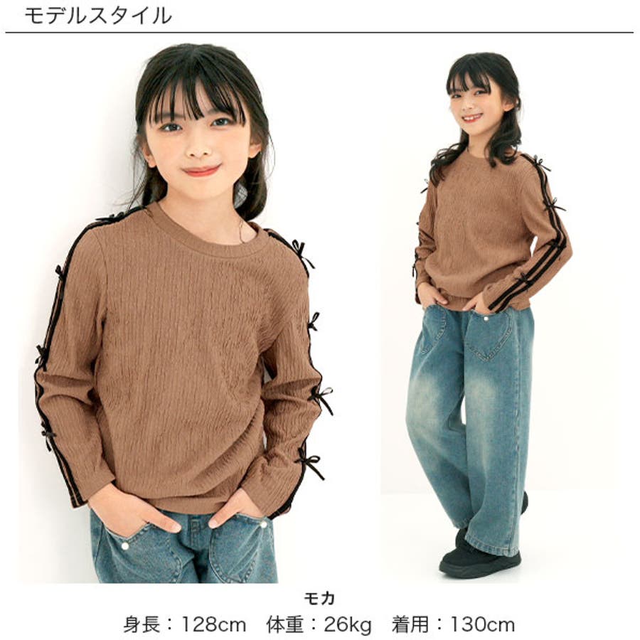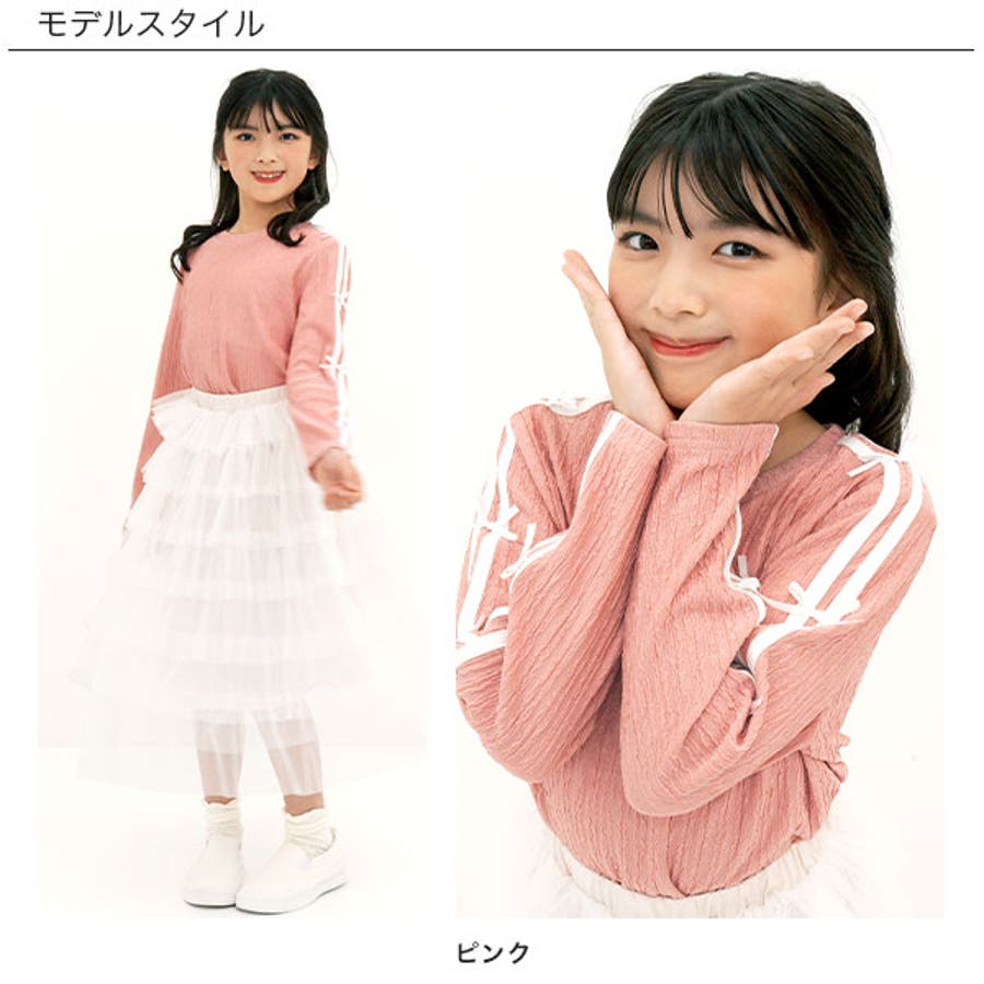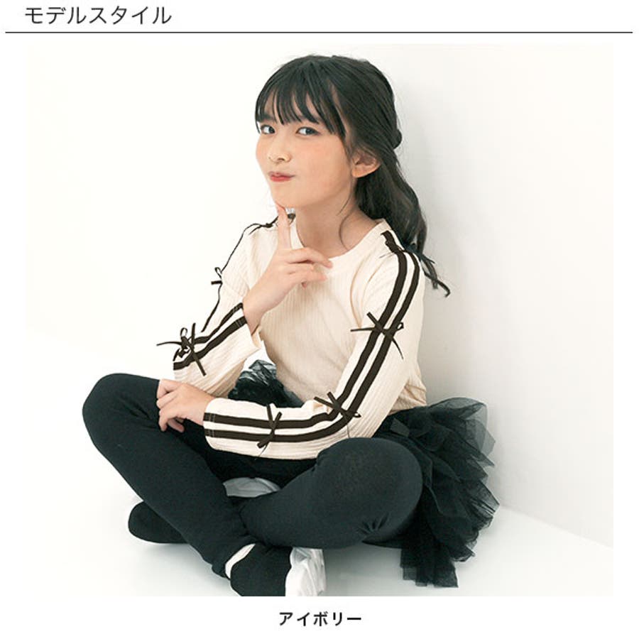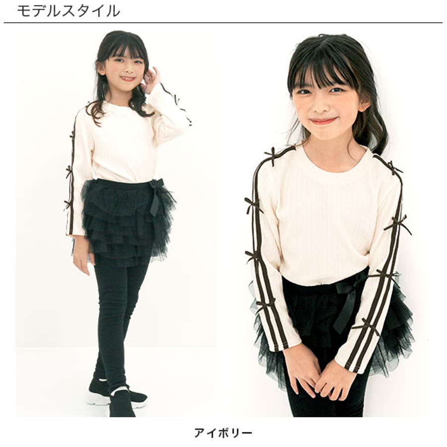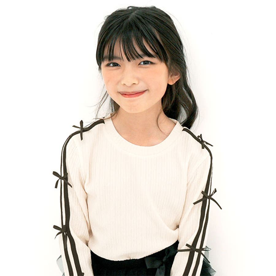 ダブルライントップス リボン 長袖