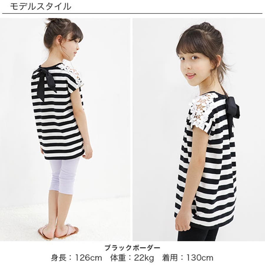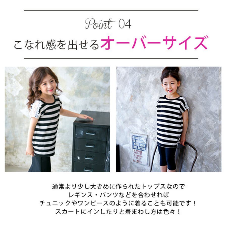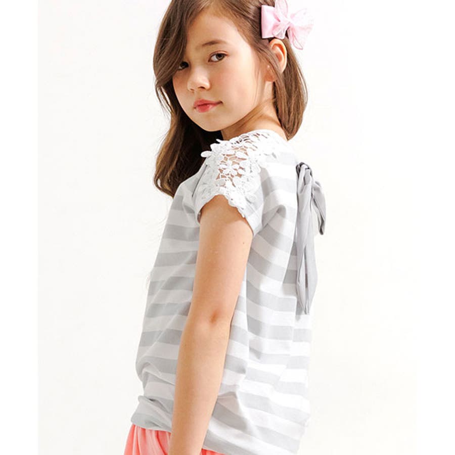韓国子供服 トップス カットソー ボーダー レース 花柄 韓国子ども服Bee