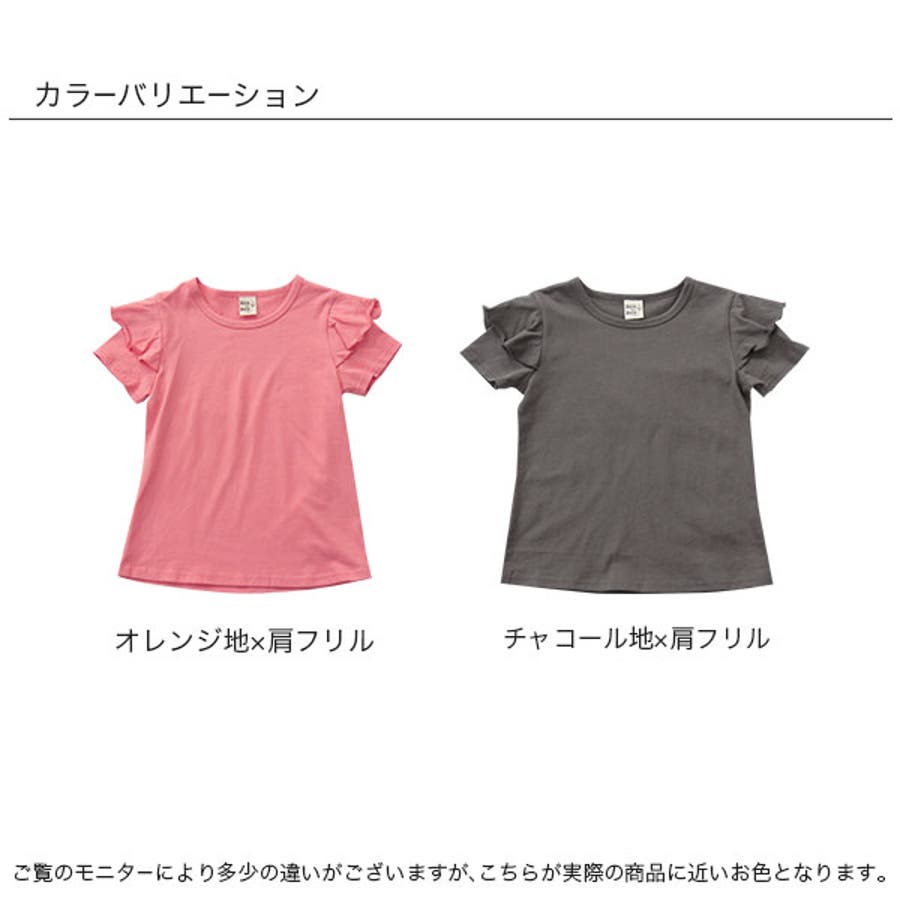 韓国子供服 韓国子ども服 韓国こども服 Bee 女の子 カジュアル シンプル 無地 キッズ チュール 肩フリル 春 夏 秋 カラバリ 100 110 120 130 140 150 ◇半袖トップス◇