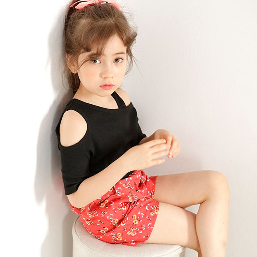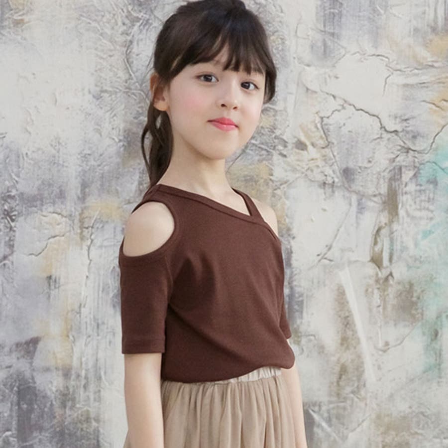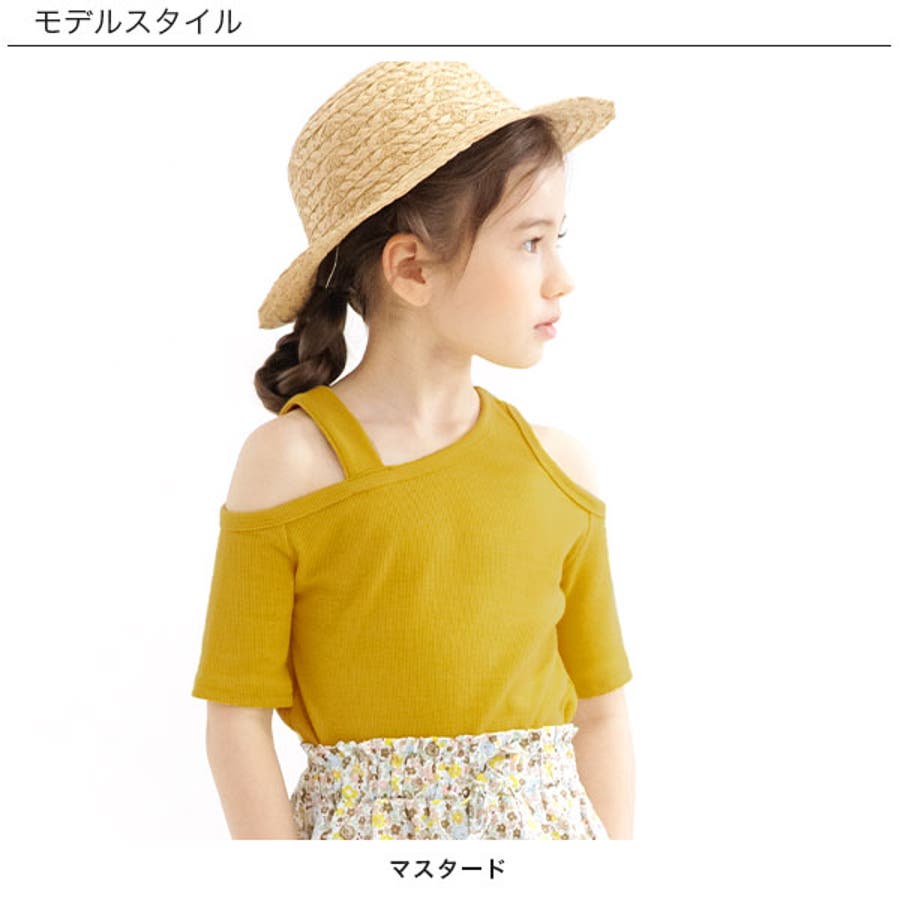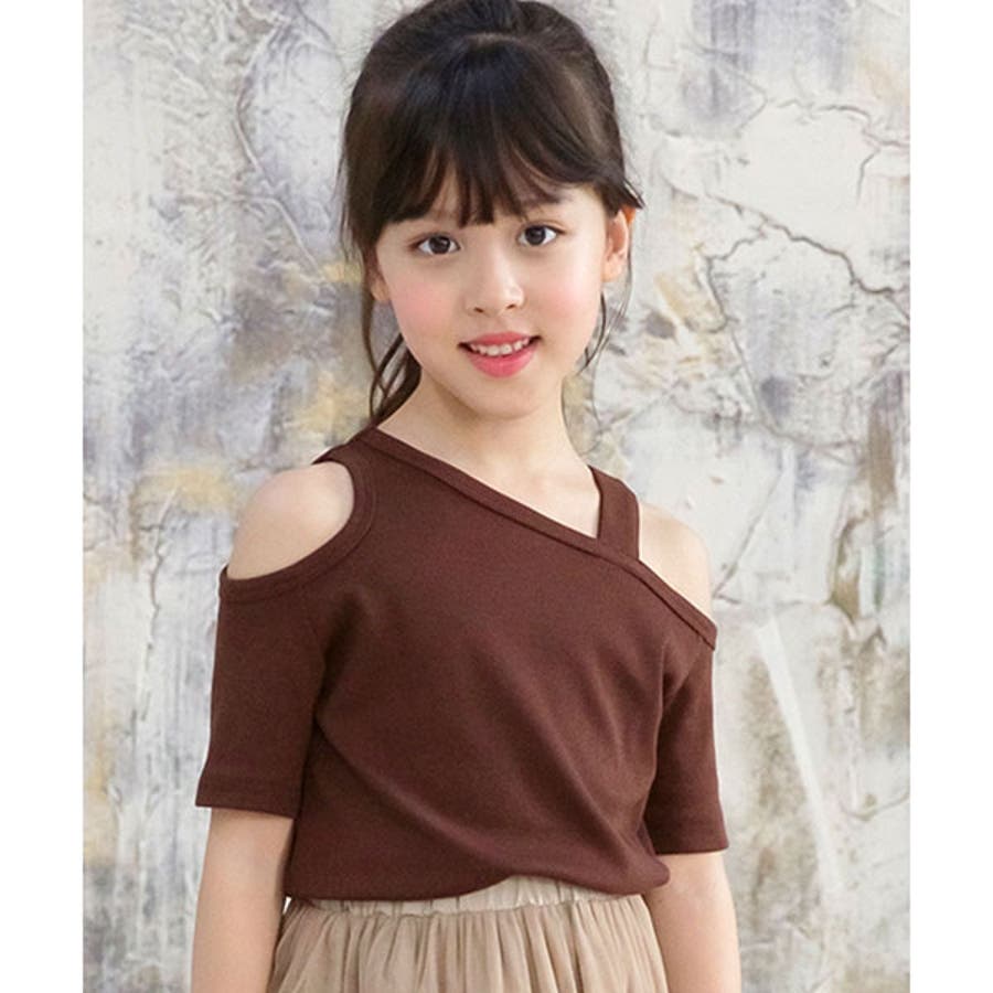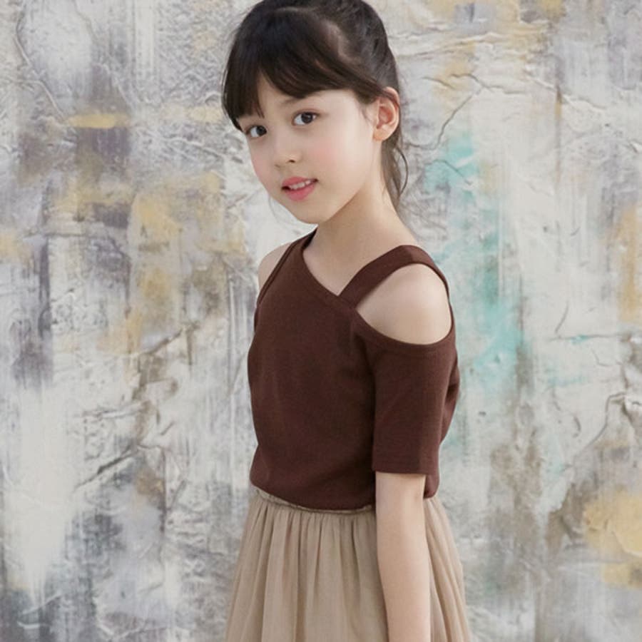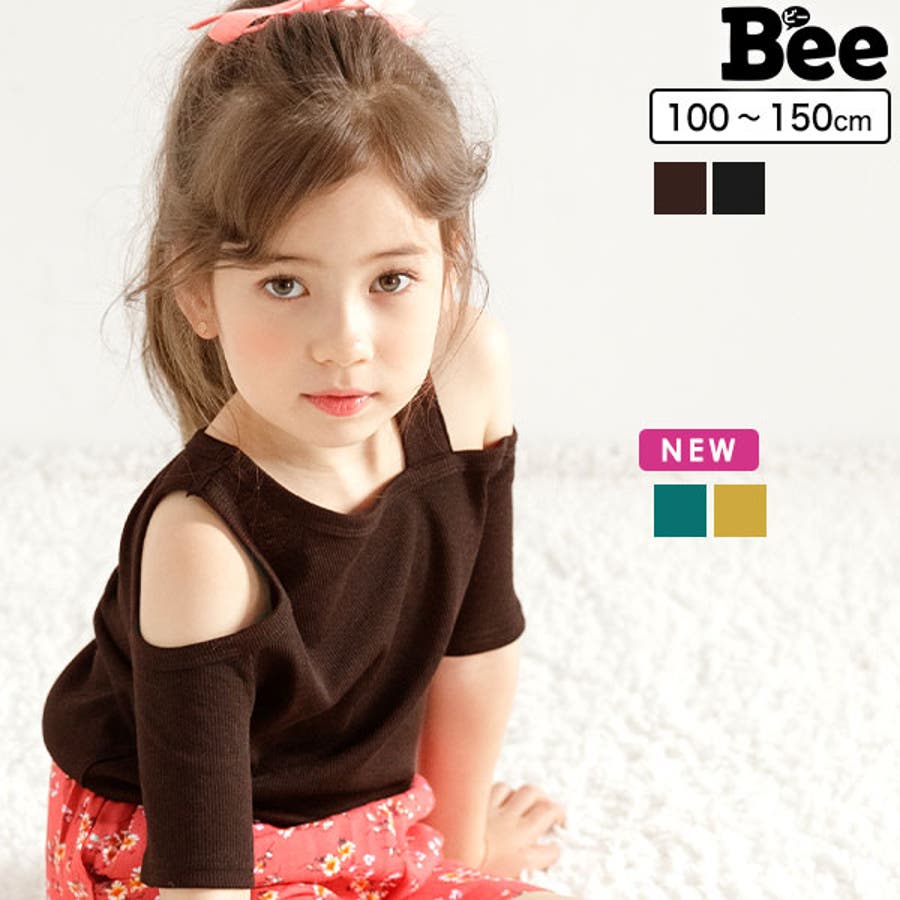 韓国子供服 韓国子ども服 韓国こども服 Bee カジュアル ナチュラル キッズ 女の子 リブ 半袖 オフショルダー シンプル 春 夏100 110 120 130 140 152◇半袖トップス◇