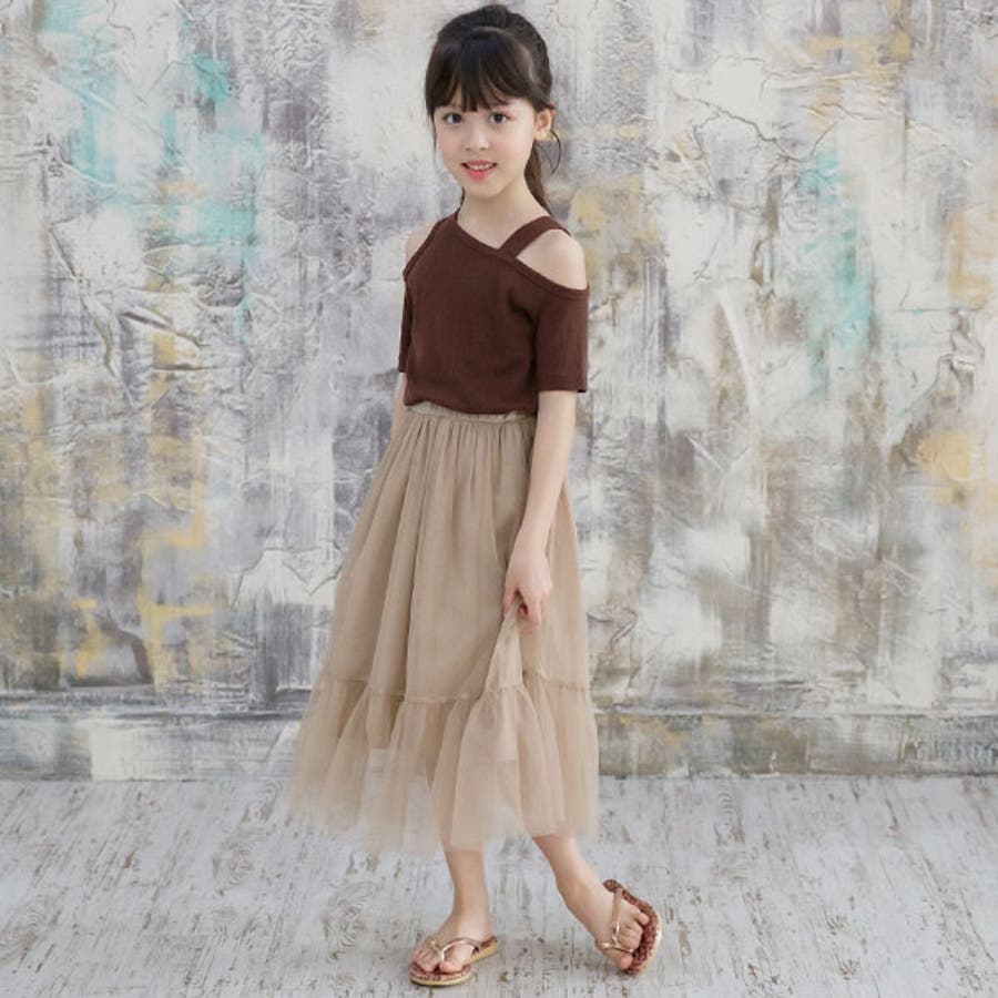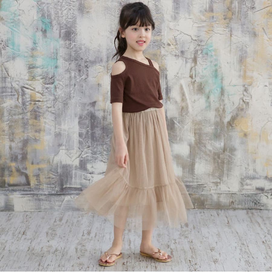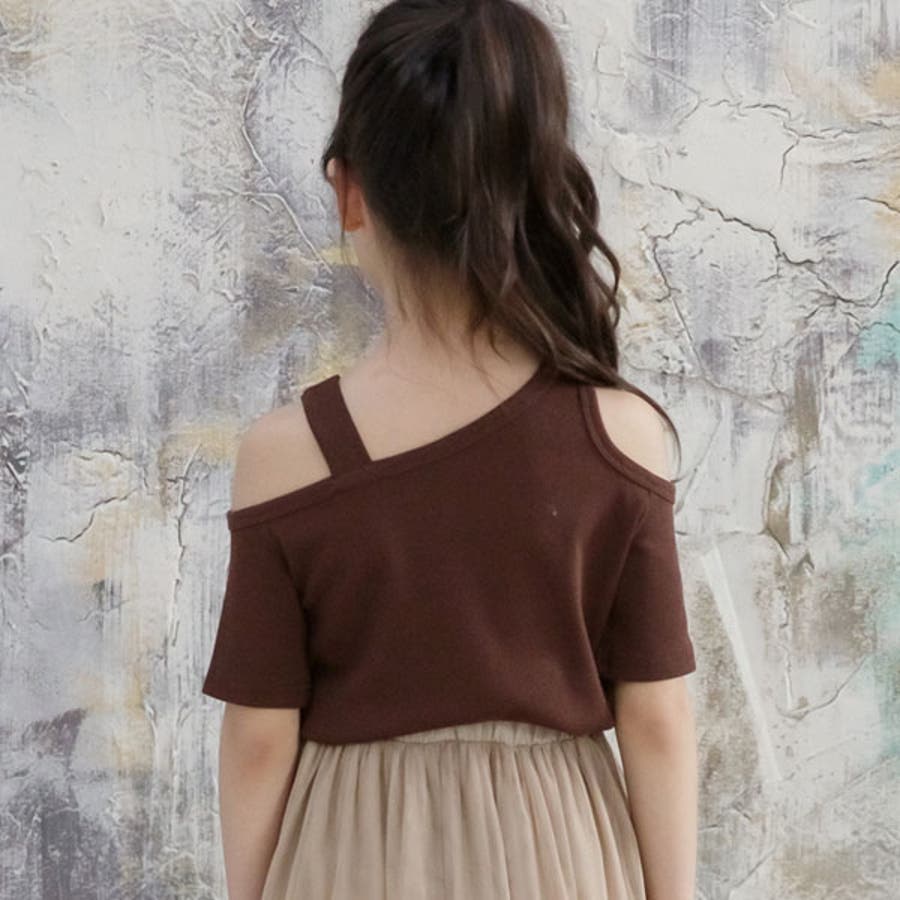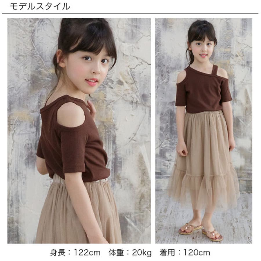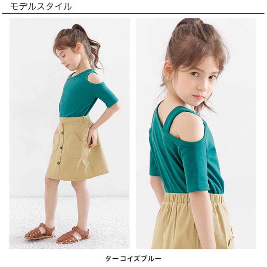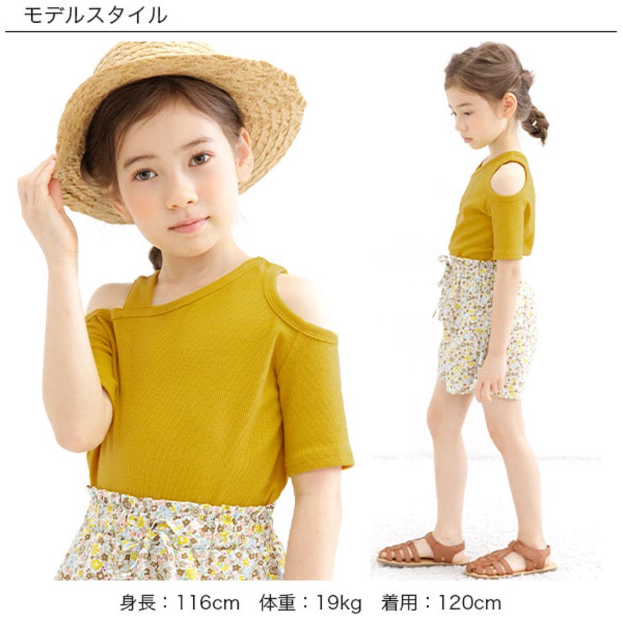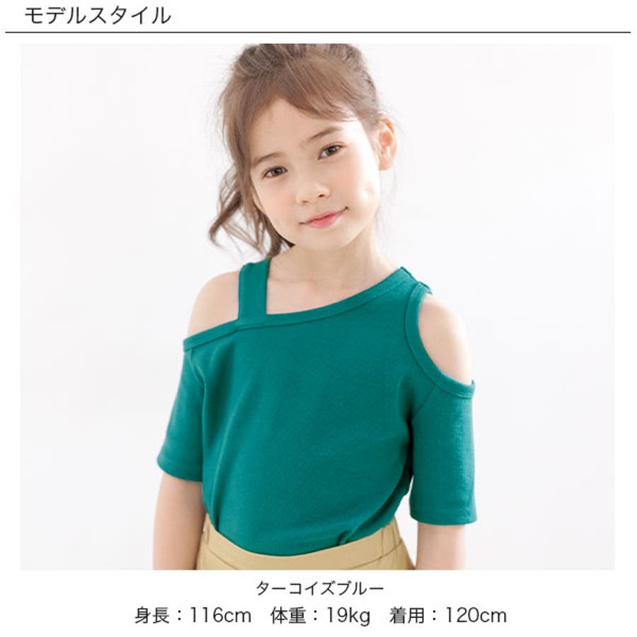 韓国子供服 韓国子ども服 韓国こども服 Bee カジュアル ナチュラル キッズ 女の子 リブ 半袖 オフショルダー シンプル 春 夏100 110 120 130 140 152◇半袖トップス◇