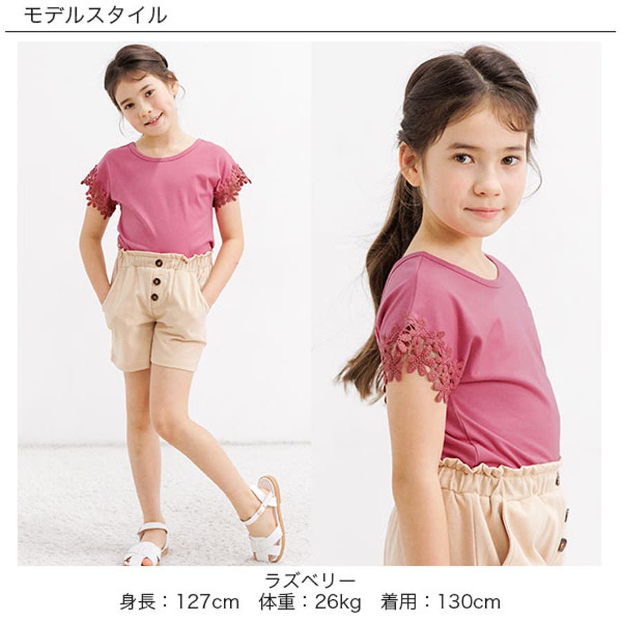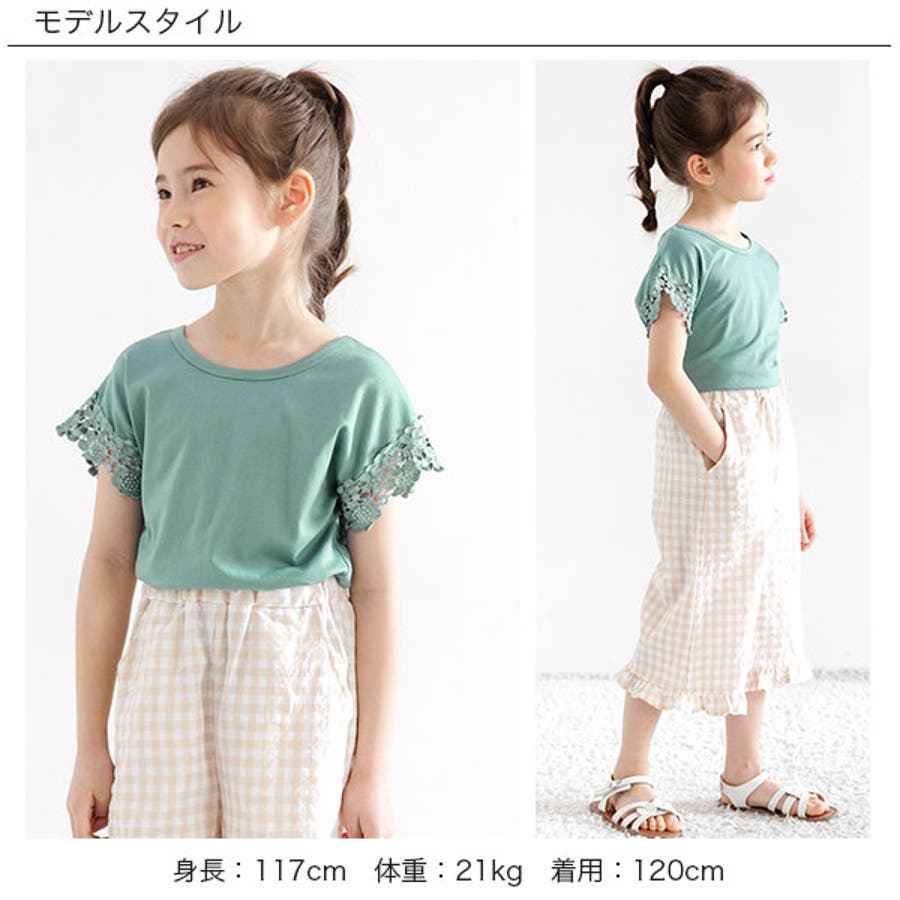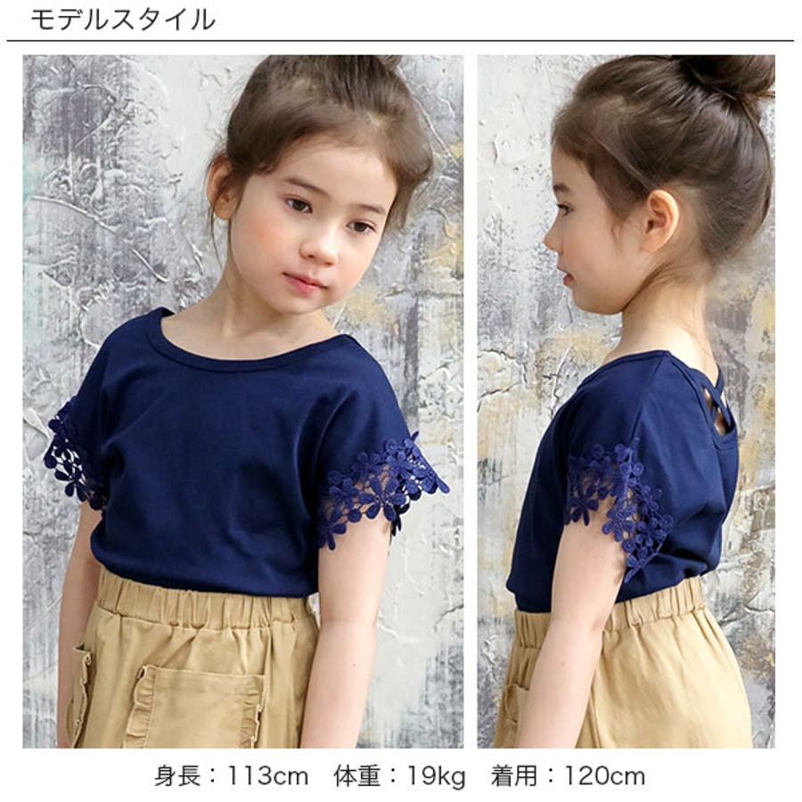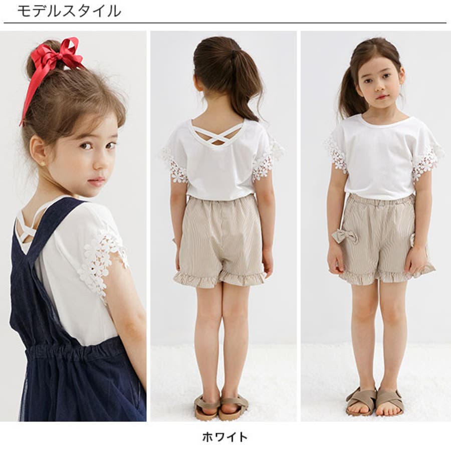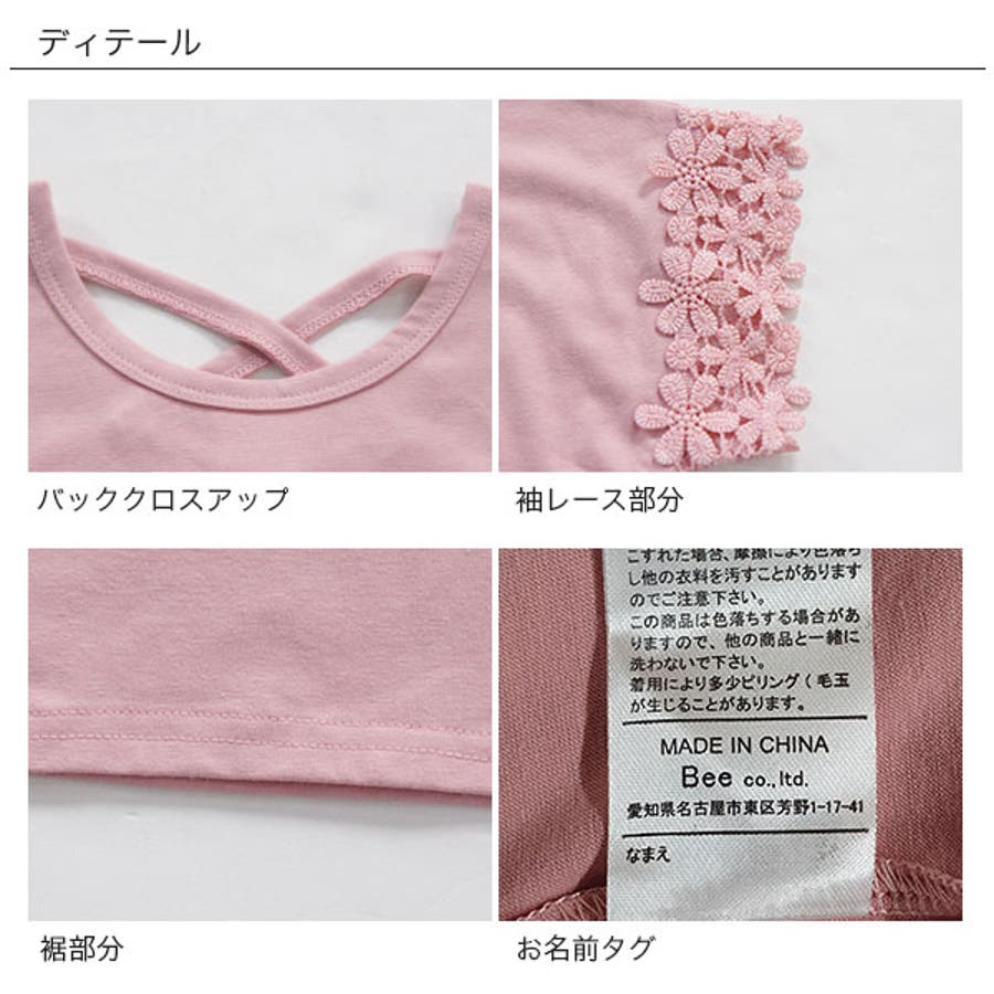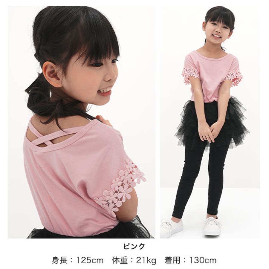 【21年夏新作】子供服 子ども服 こども服 キッズ 女の子 レース バッククロス シンプル 無地 夏 100 110 120 130 140 150◇半袖トップス◇