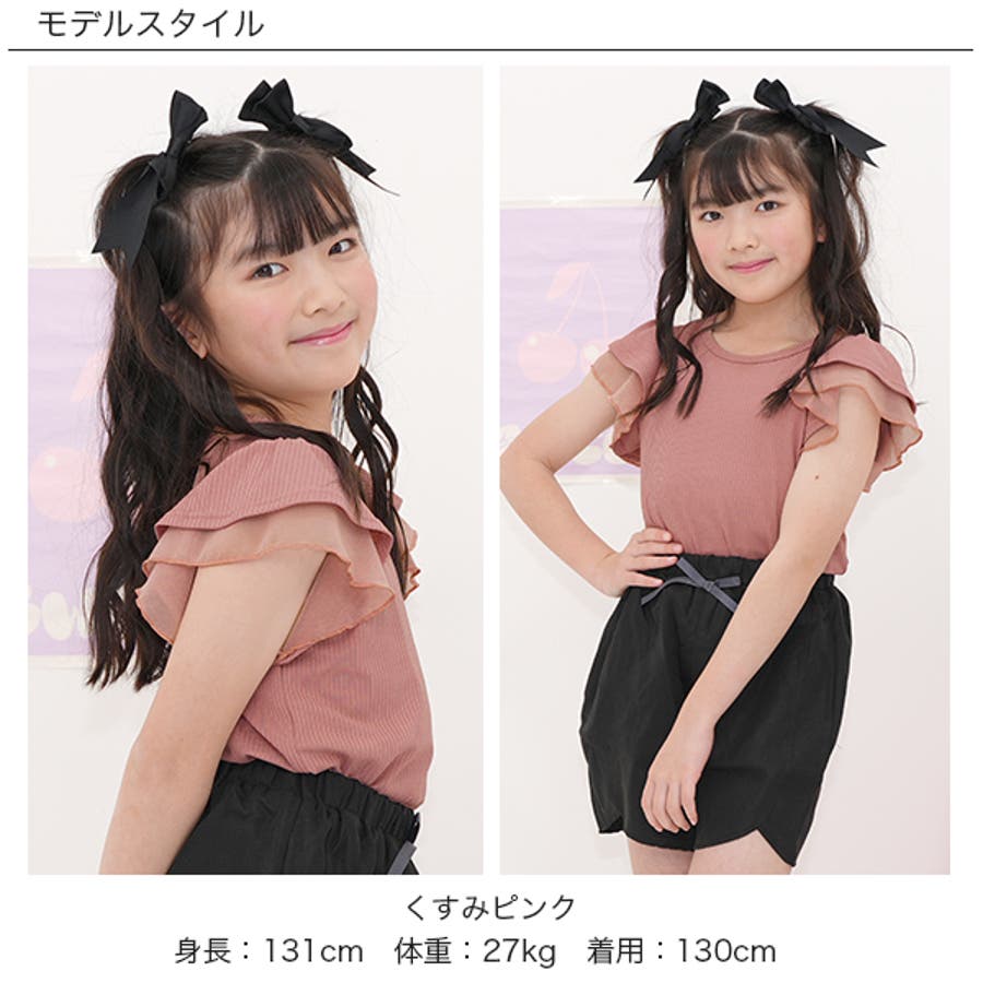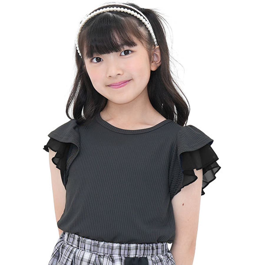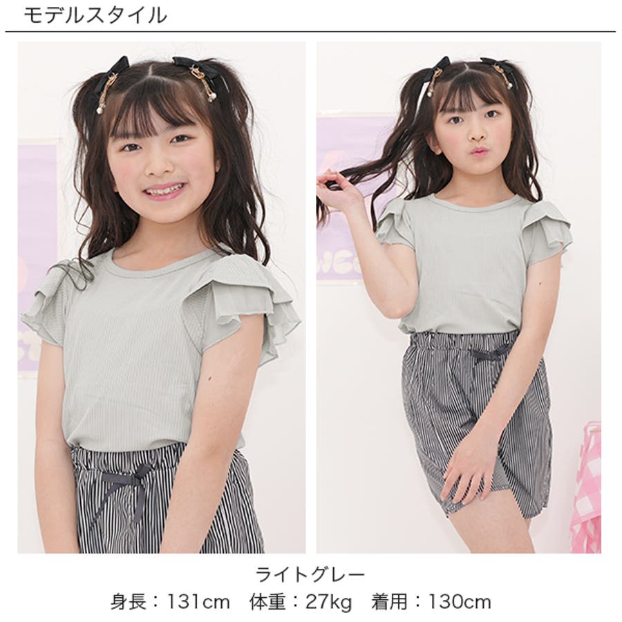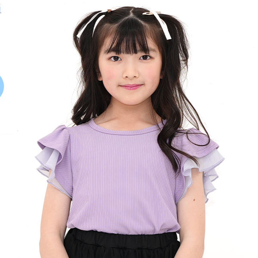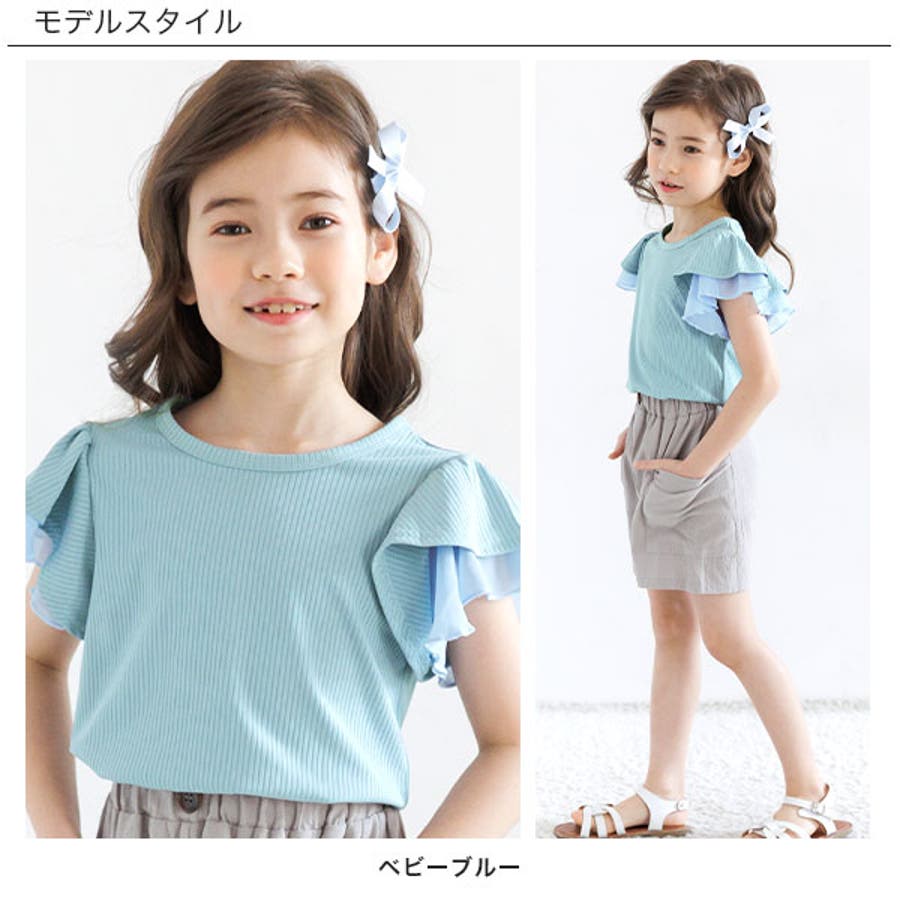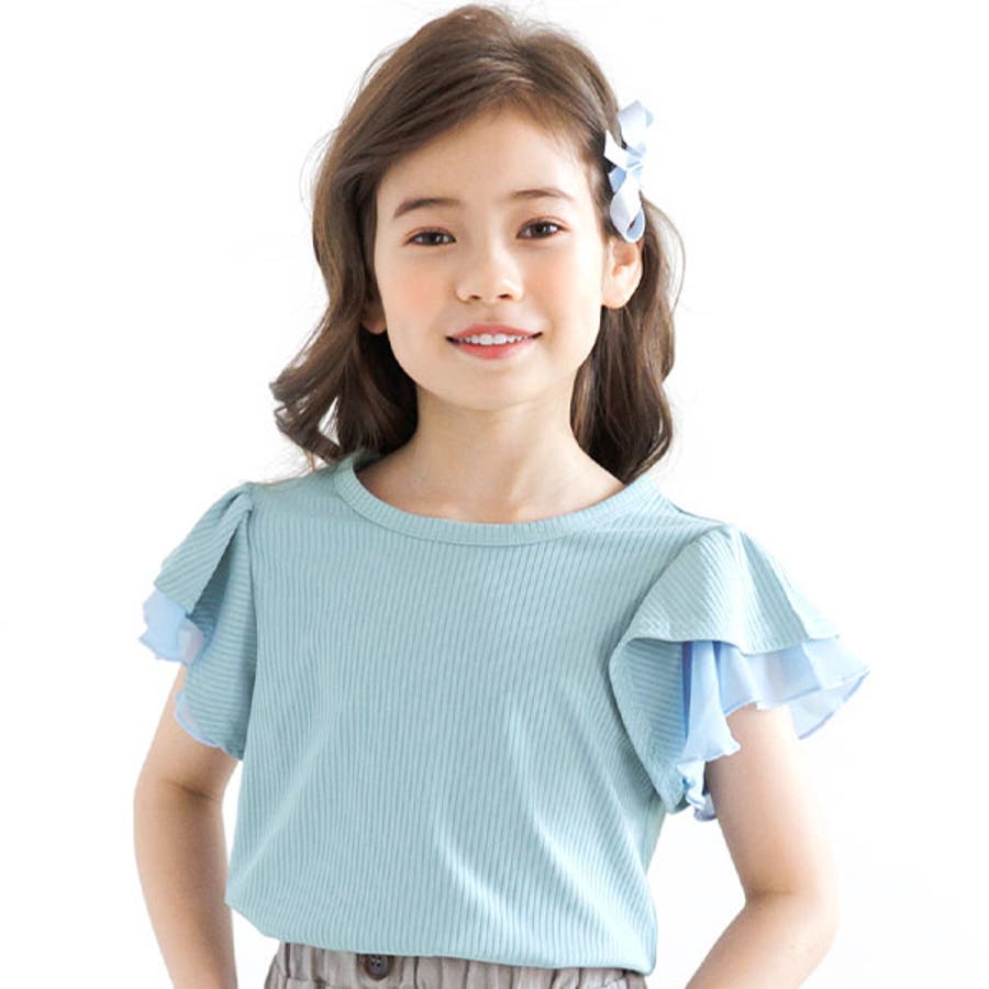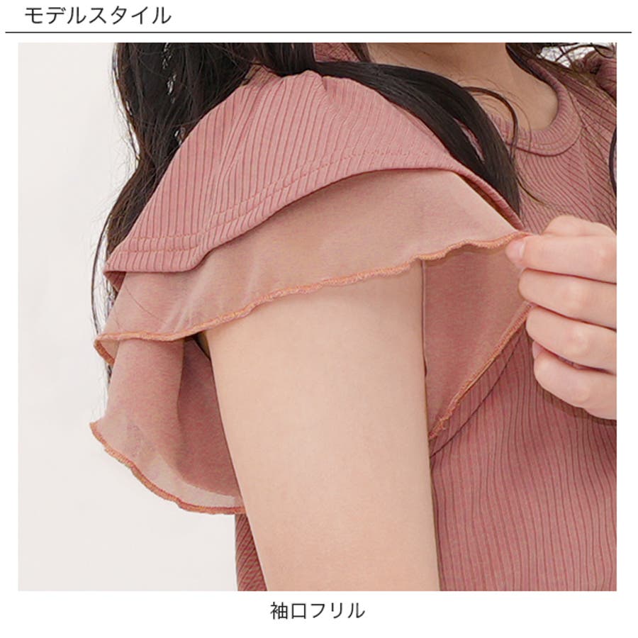 フリル袖トップス 半袖 リブ地