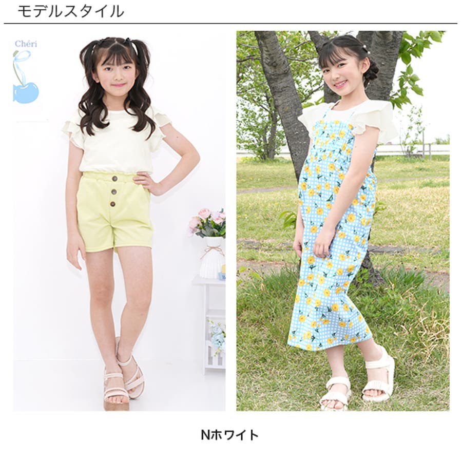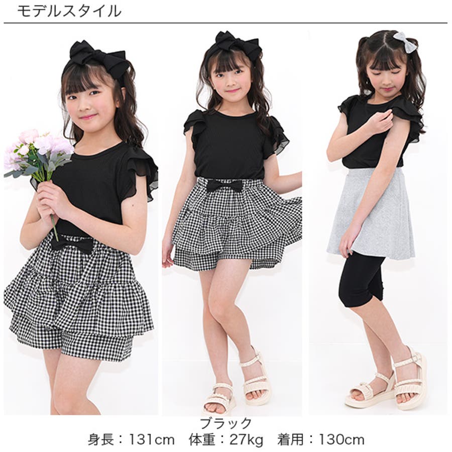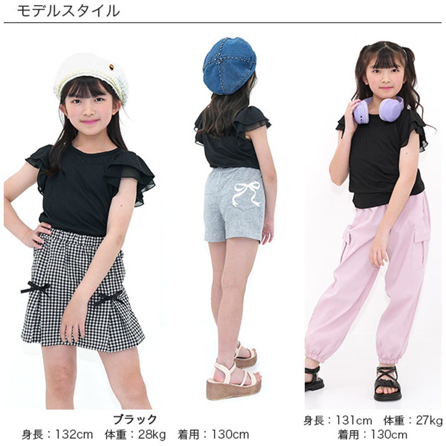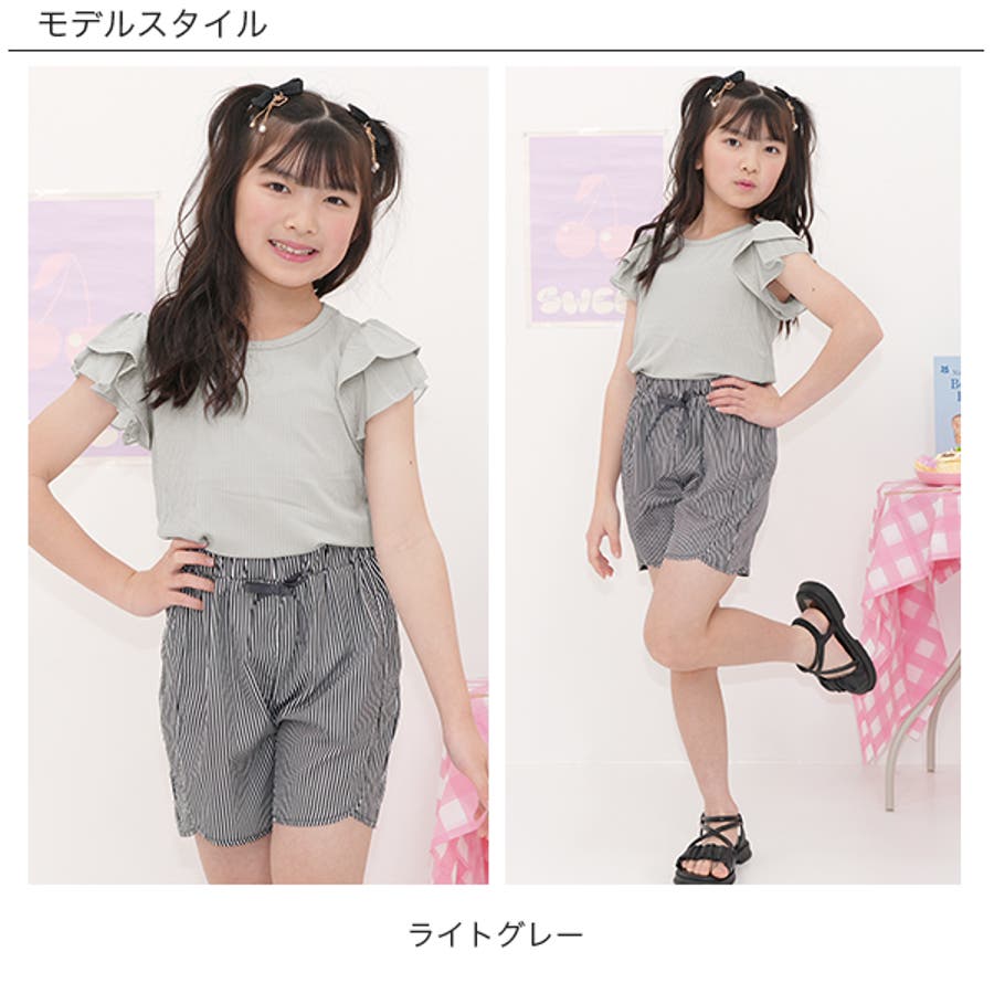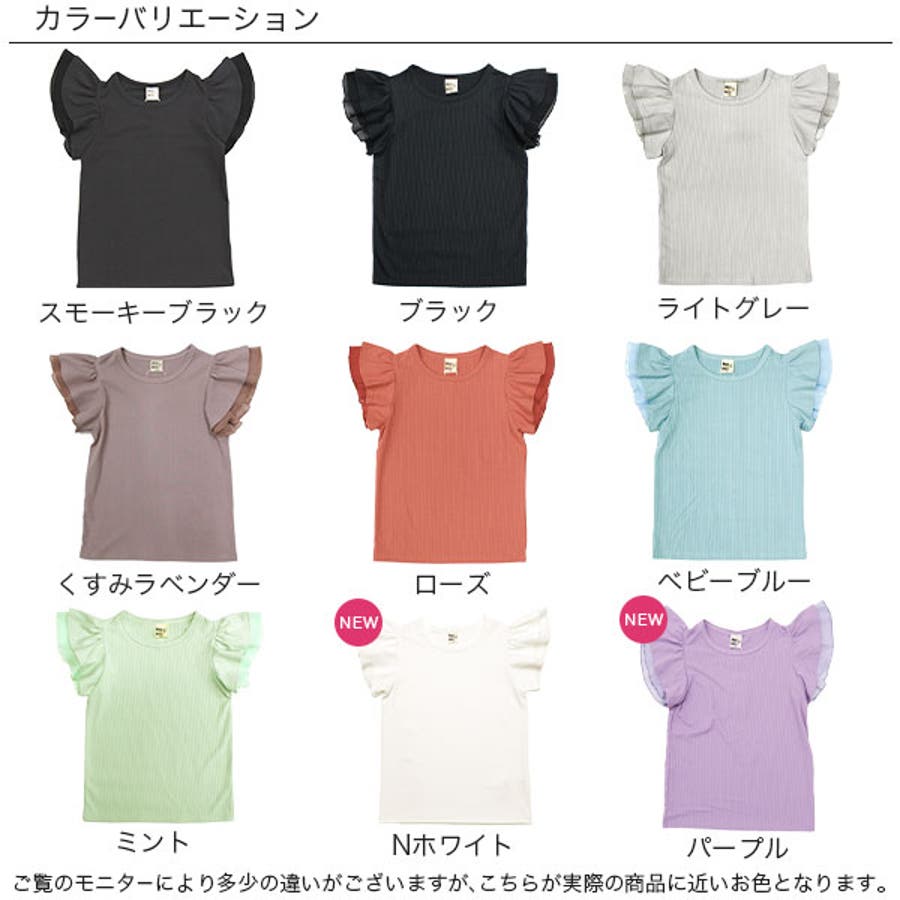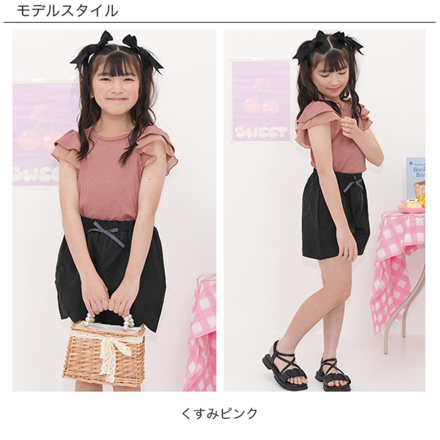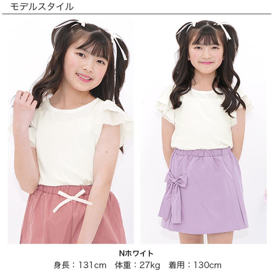 フリル袖トップス 半袖 リブ地