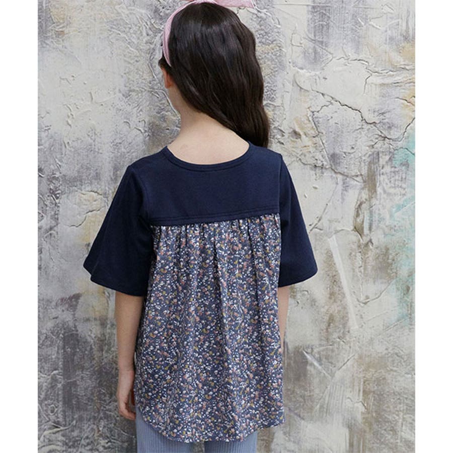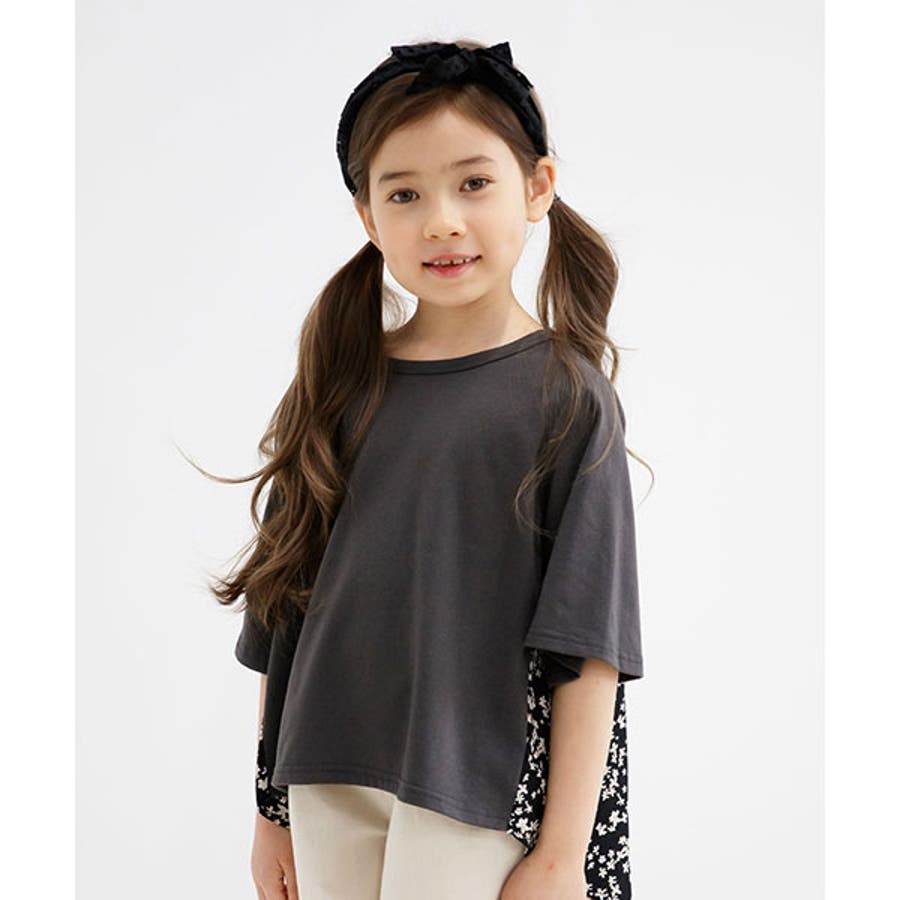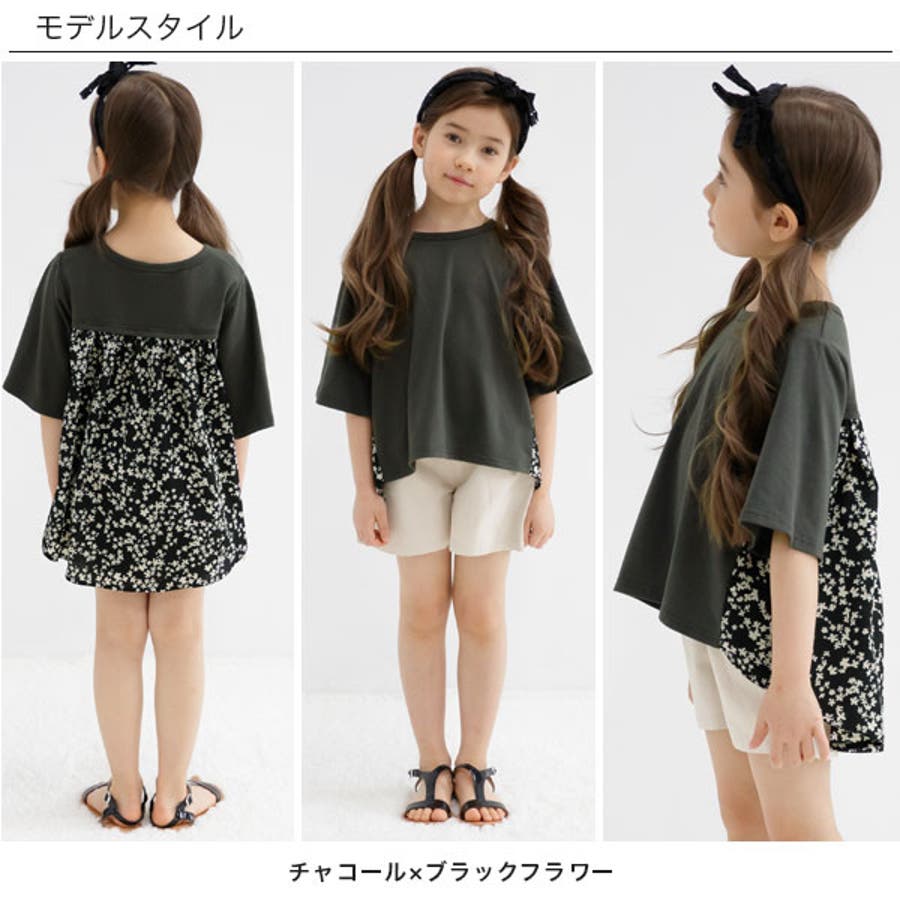 【21年夏新作】韓国子供服 子ども服 こども服 キッズ 女の子 シフォン 柄 バックシフォン 切替え 春 夏 100 110 120 130 140 150 ◇半袖トップス◇