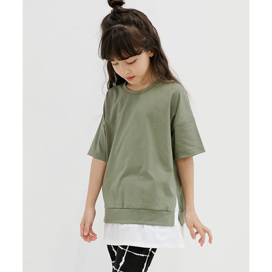 【21年夏新作】韓国子供服 子供服 子ども服 こども服 キッズ 女の子 男の子 レイヤード風 重ね着風 切替え 無地 半袖 夏 100 110 120 130 140 150 ◇半袖トップス◇