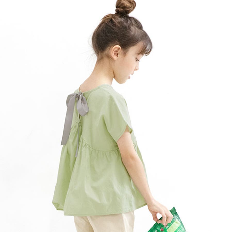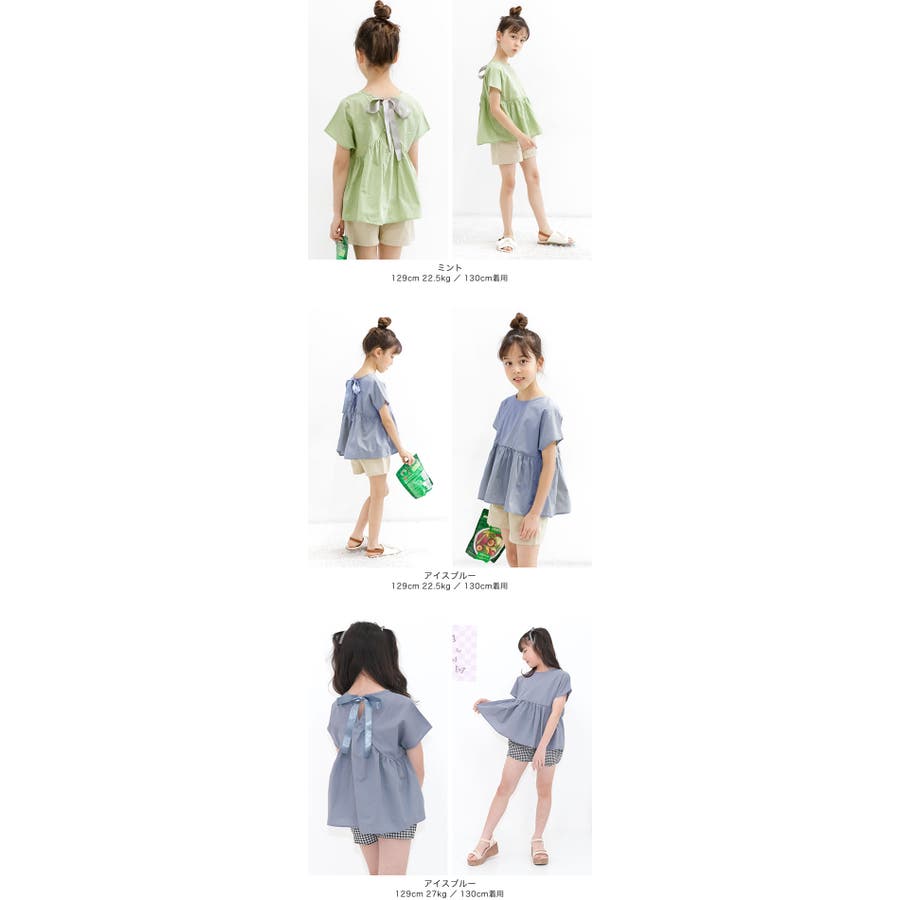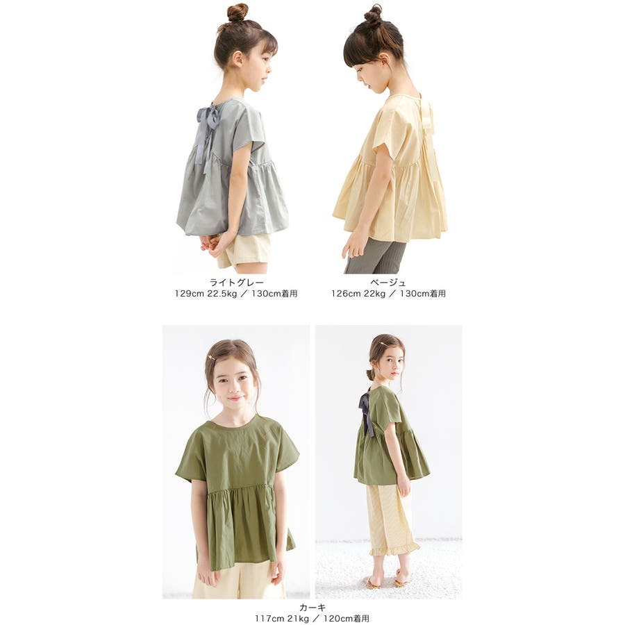 薄い生地で涼しそうです。後ろのリボンも可愛く、色も可愛いです。ベージュですが、薄黄色なイメージです。しわになる素材なのは薄いので仕方ないかな。