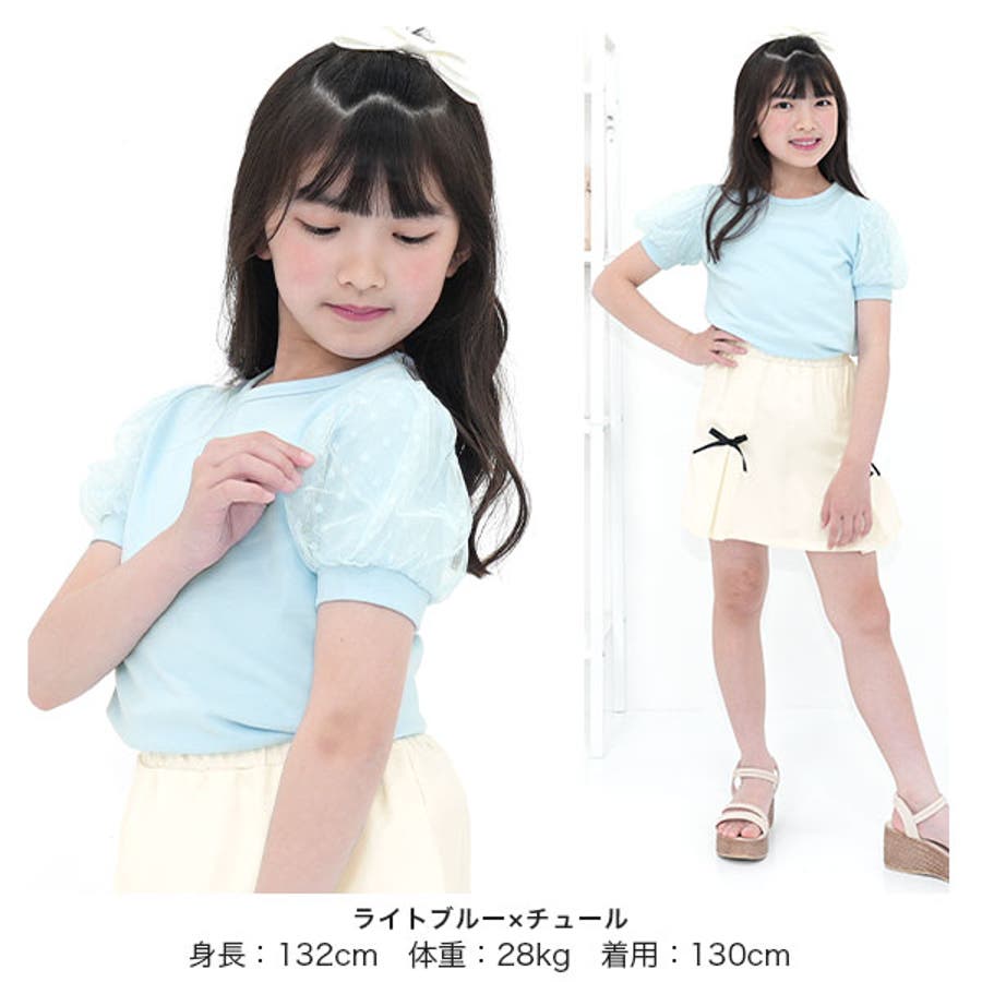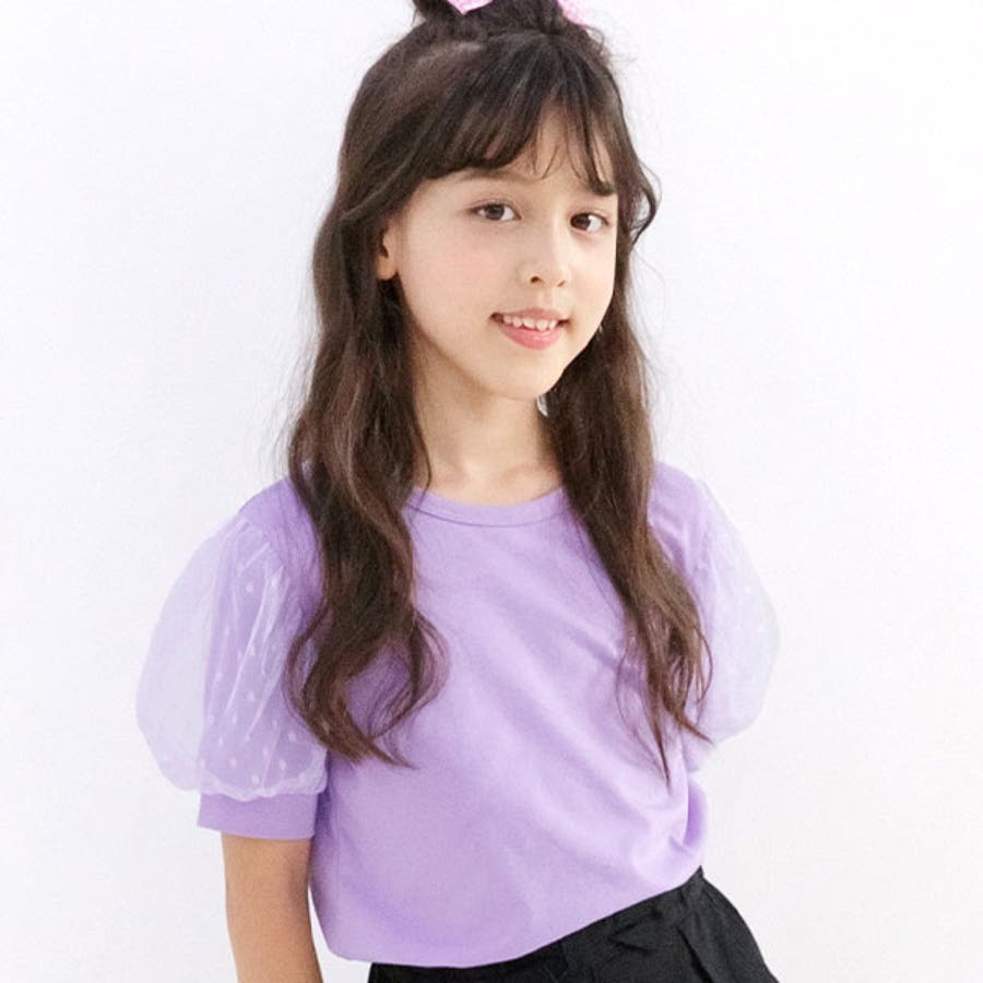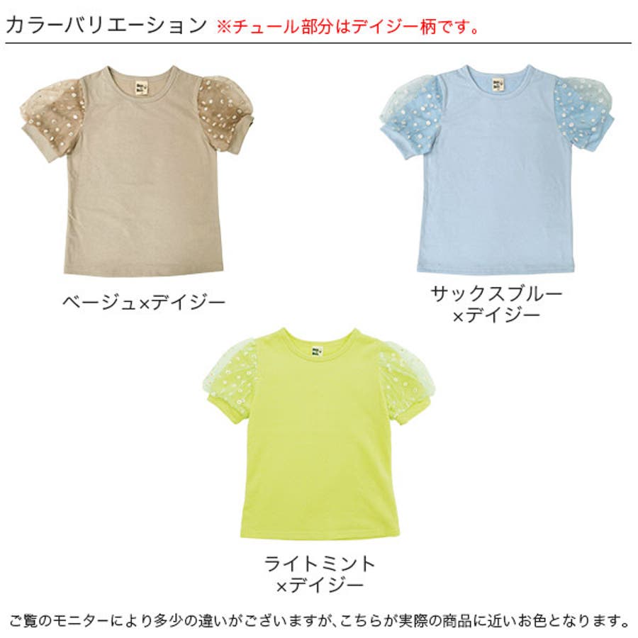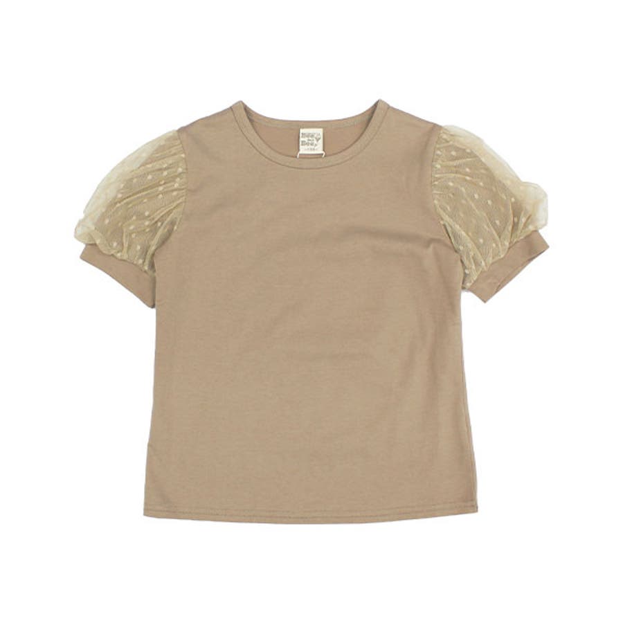 チュール袖トップス 半袖 パフスリーブ