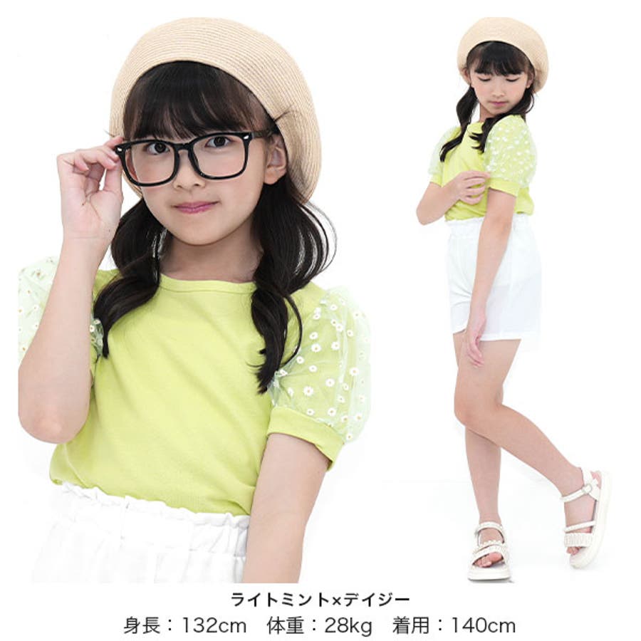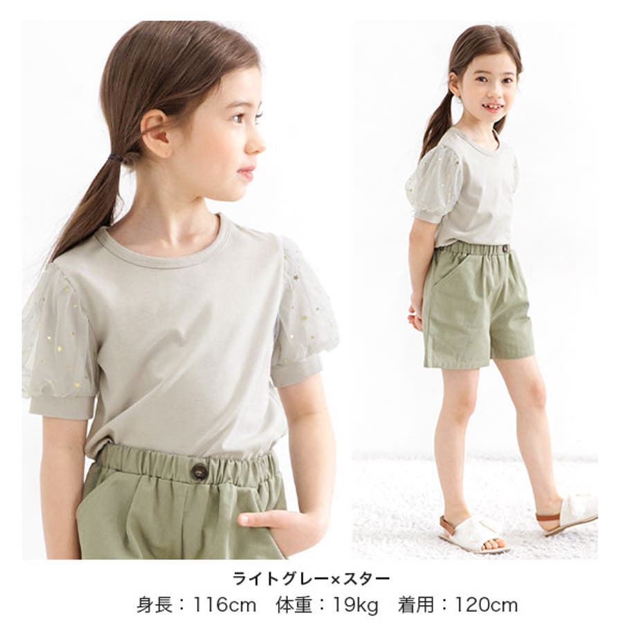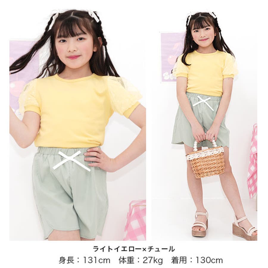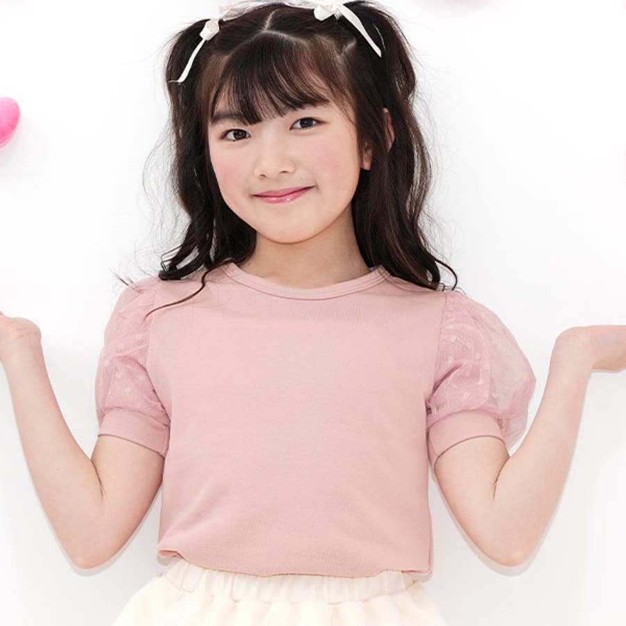 チュール袖トップス 半袖 パフスリーブ