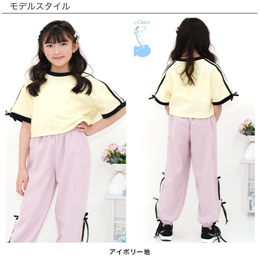 クロップド丈トップス リボン ライン