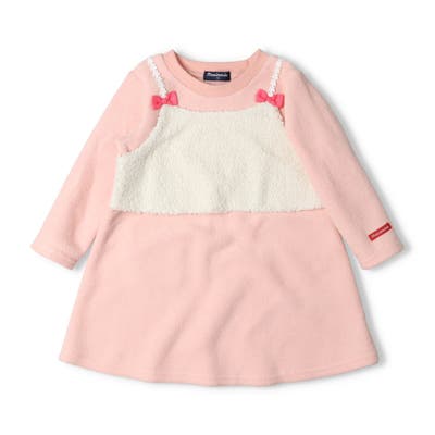 | もこもこした柔らかい見た目と肌触りが特徴のブークレー素材の長袖ワンピース。裏起毛で暖かみもあり、冬にはピッタリな素材です。ボア素材のビスチェが前のみにドッキングされたデザイン。1枚でコーディネート、重ね着が楽しめるアイテム。【アイテム】トップス シンプル ガーリー フェミニン カジュアル お洒落 オシャレ かわいい 可愛い 普段着 デイリーウェア お出かけ着 お外着 お外遊び着 子ども こども 女児 女の子 ガールズ キッズ ベビーサイズ トドラーサイズ 幼稚園 保育園 小学校 通園 通学 小学生 2025年秋冬物新作 丸高衣料 ロングスリーブ 長袖 レイヤード風 オフホワイト 白色 ピンク ムージョンジョン |