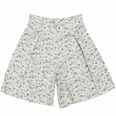 華やかで上品な小花柄に、ウエスト部分のリボンがアクセントになったキュロットパンツ♪