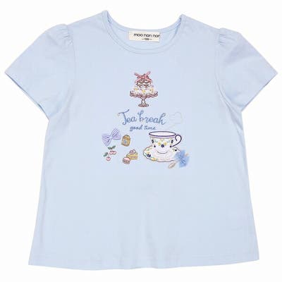 ティータイムのモチーフと刺繍が女の子ごころをくすぐるTシャツ♪