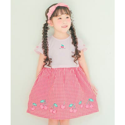 ギンガムチェックとチェリーのアップリケの組み合わせが相性抜群の一枚◎