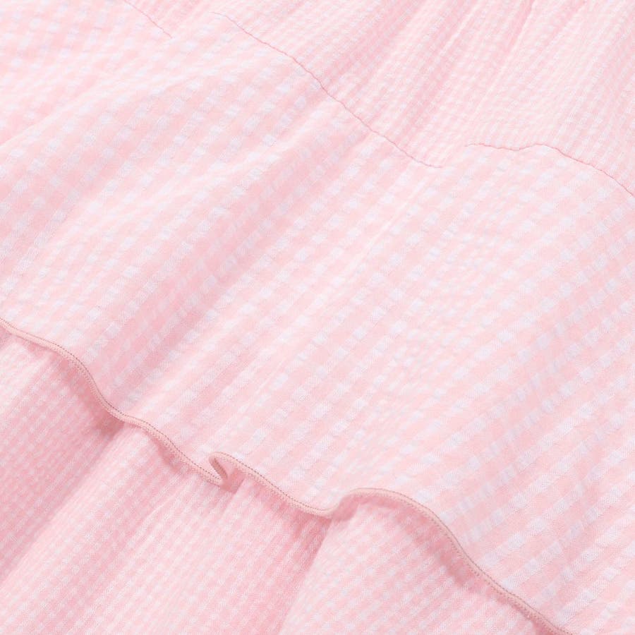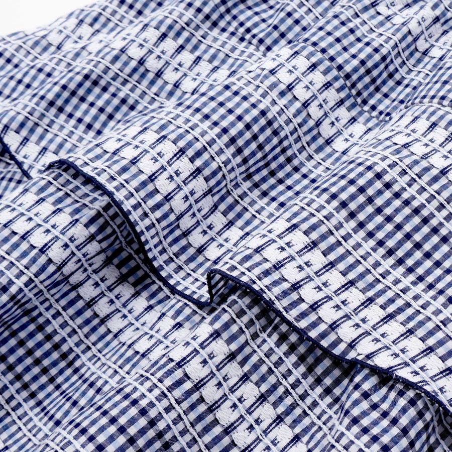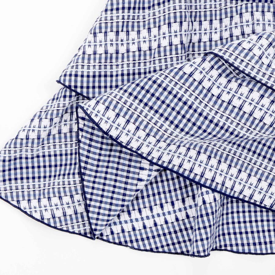 ギンガムチェック生地は大きい柄、小さい柄がティアードになって可愛らしい雰囲気を演出します。
