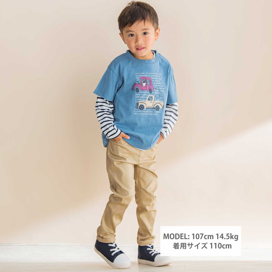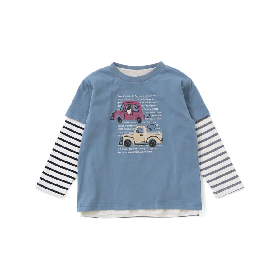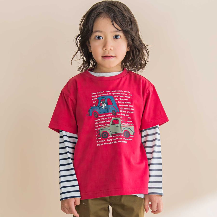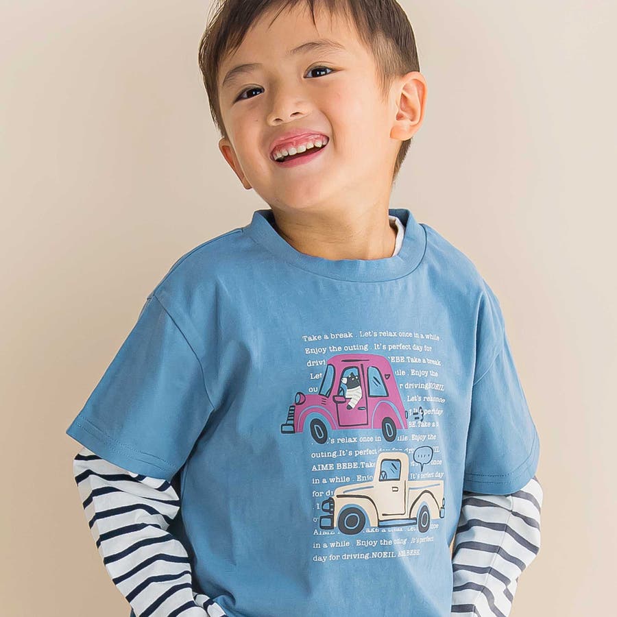 車プリント天竺半袖Tシャツ+ボーダー柄長袖Tシャツセット(80~130cm)