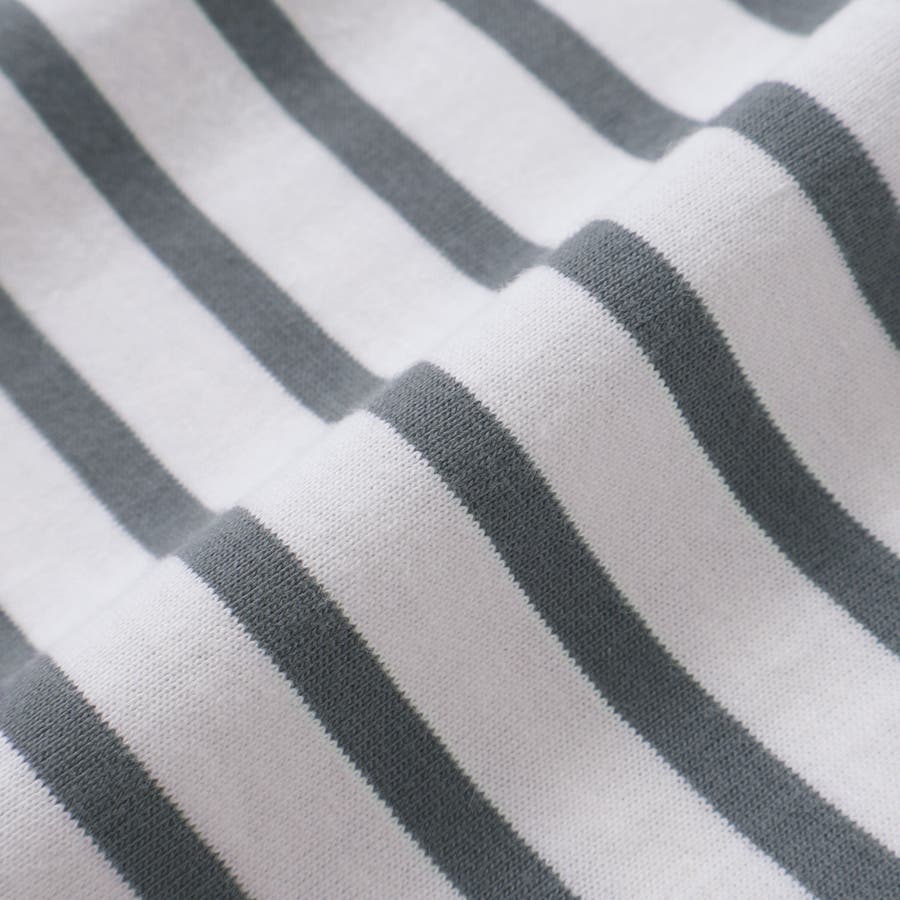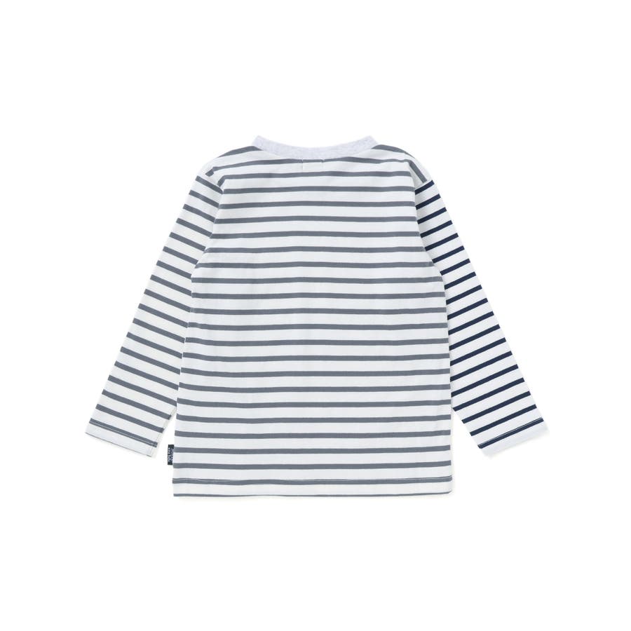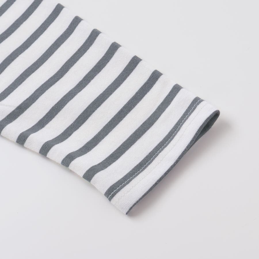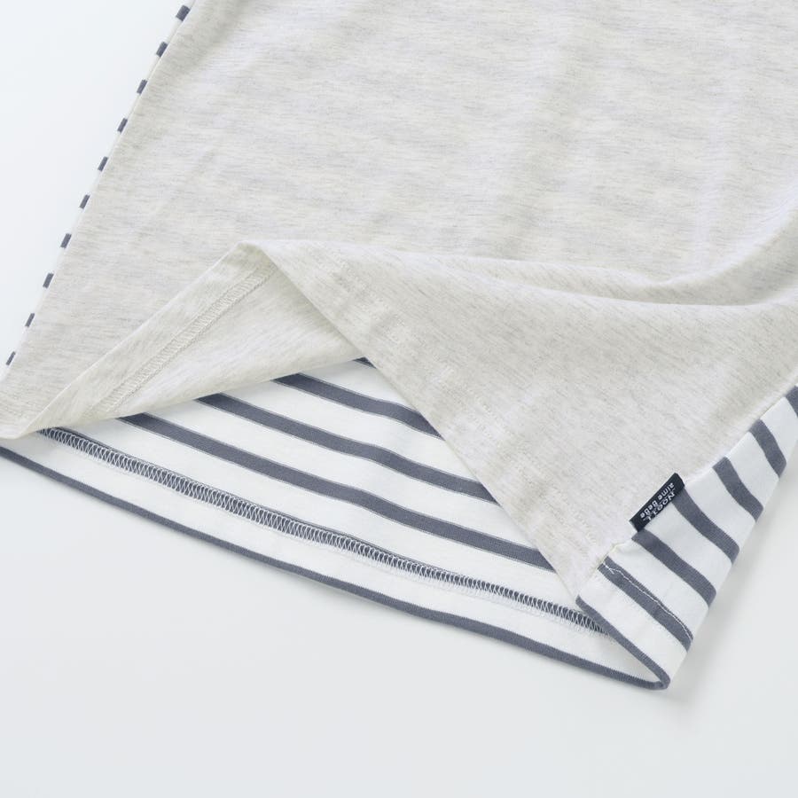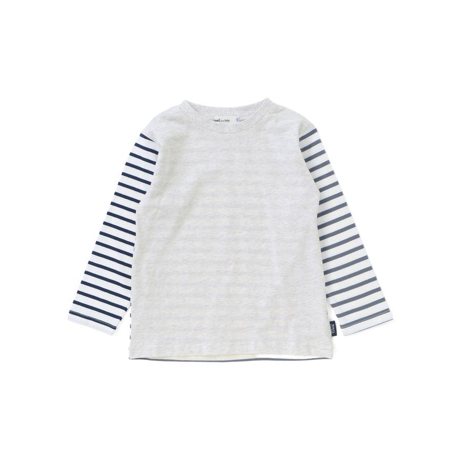 左右の袖や前後の身ごろのボーダーと無地の切り替えが目を惹く長袖Tシャツのセット。