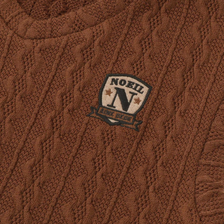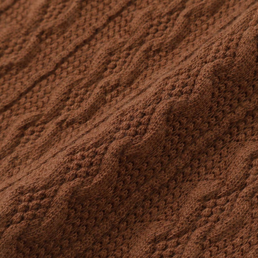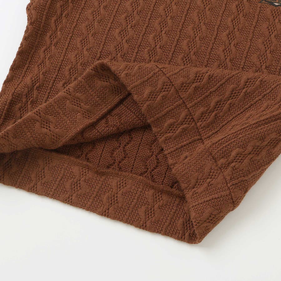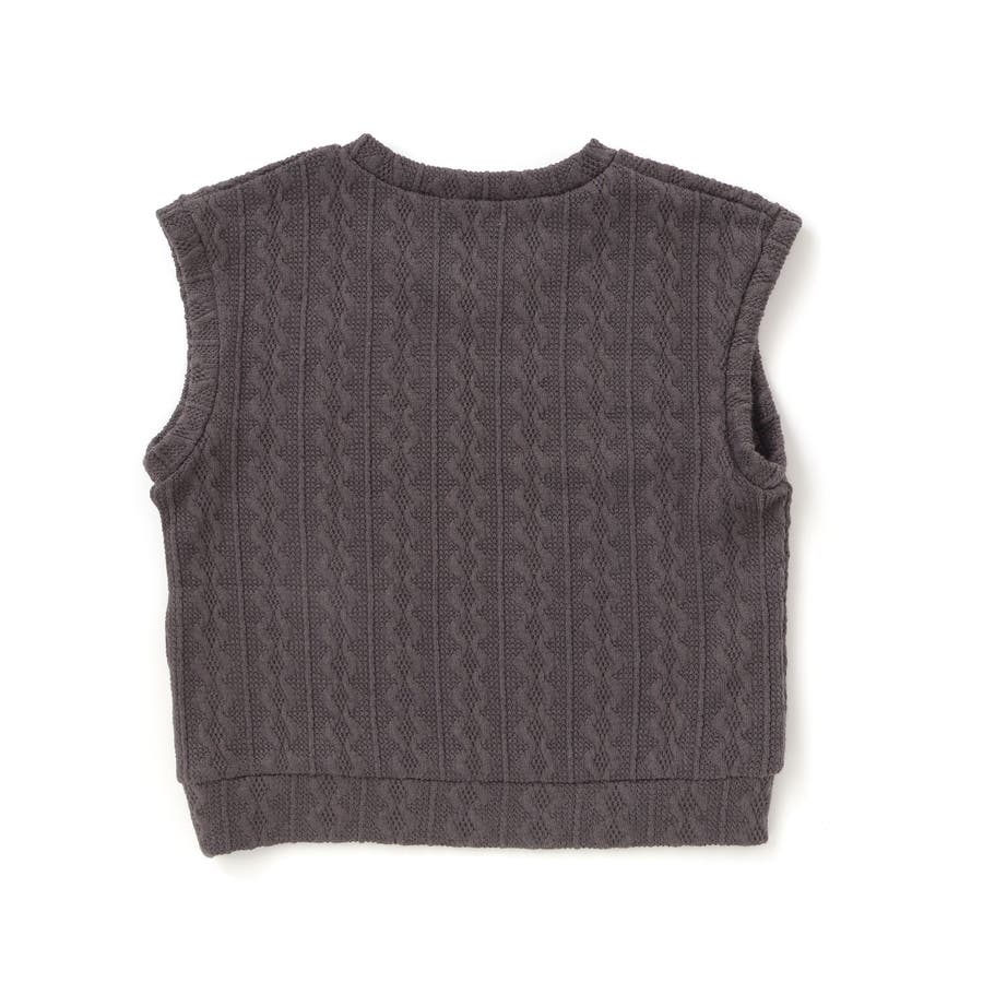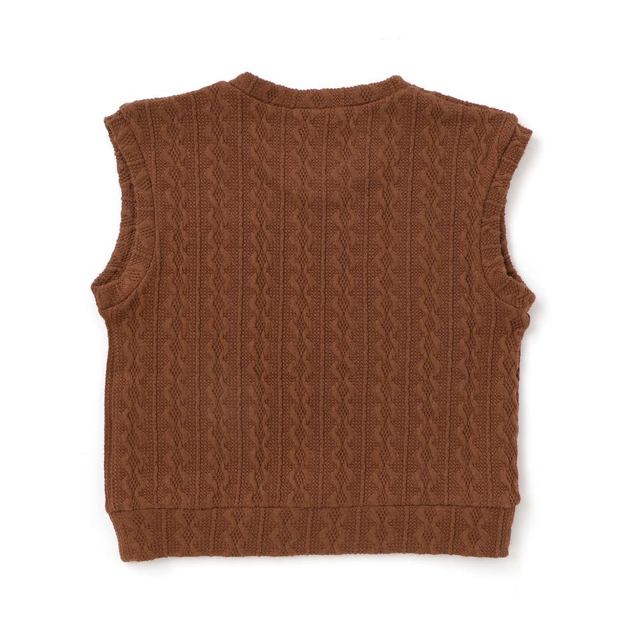 ベストは編地のようなケーブル柄が特徴的です。