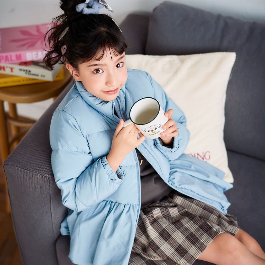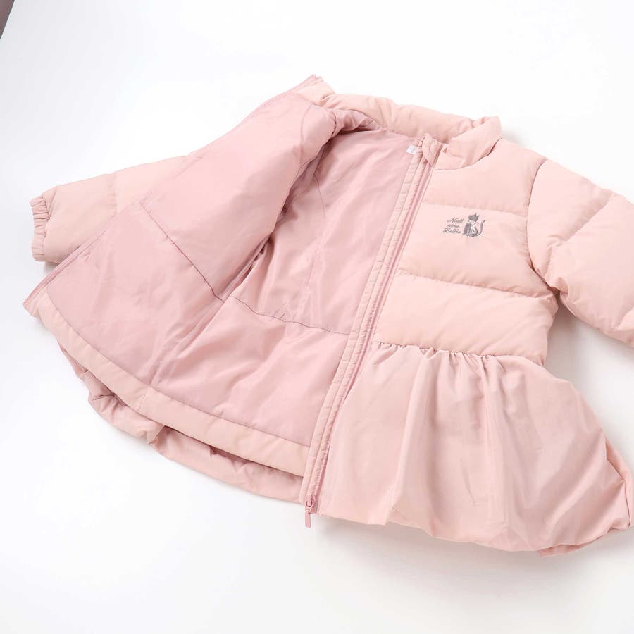 フリルたっぷりで華やかな女の子用ダウンコート。