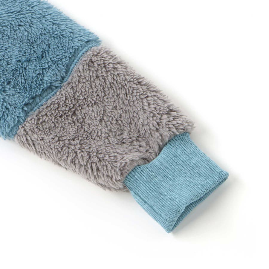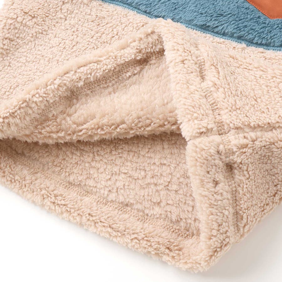 両面ナッピングフリース素材で、ふんわりとした肌触りと高い保温性を両立。