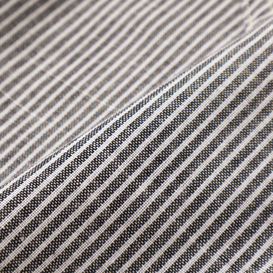 ブラック系(ブラックとホワイトのストライプに無地のチャコールグレー)とネイビー系(ネイビーとホワイトのストライプに無地の杢グレー)の2色展開。