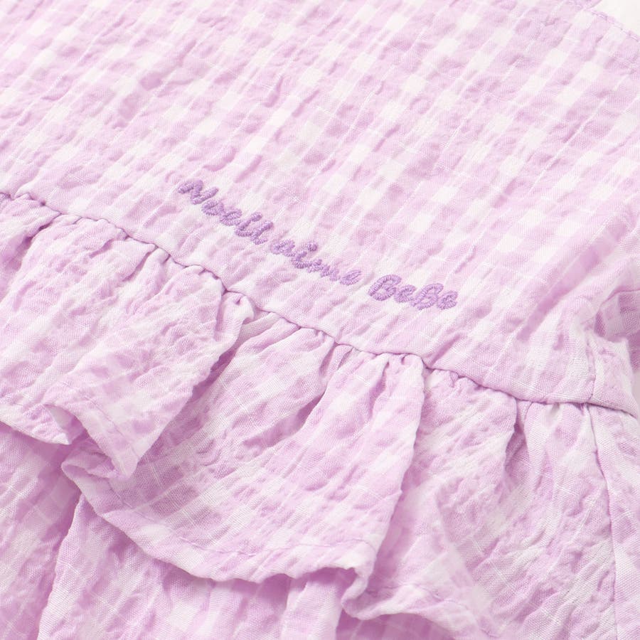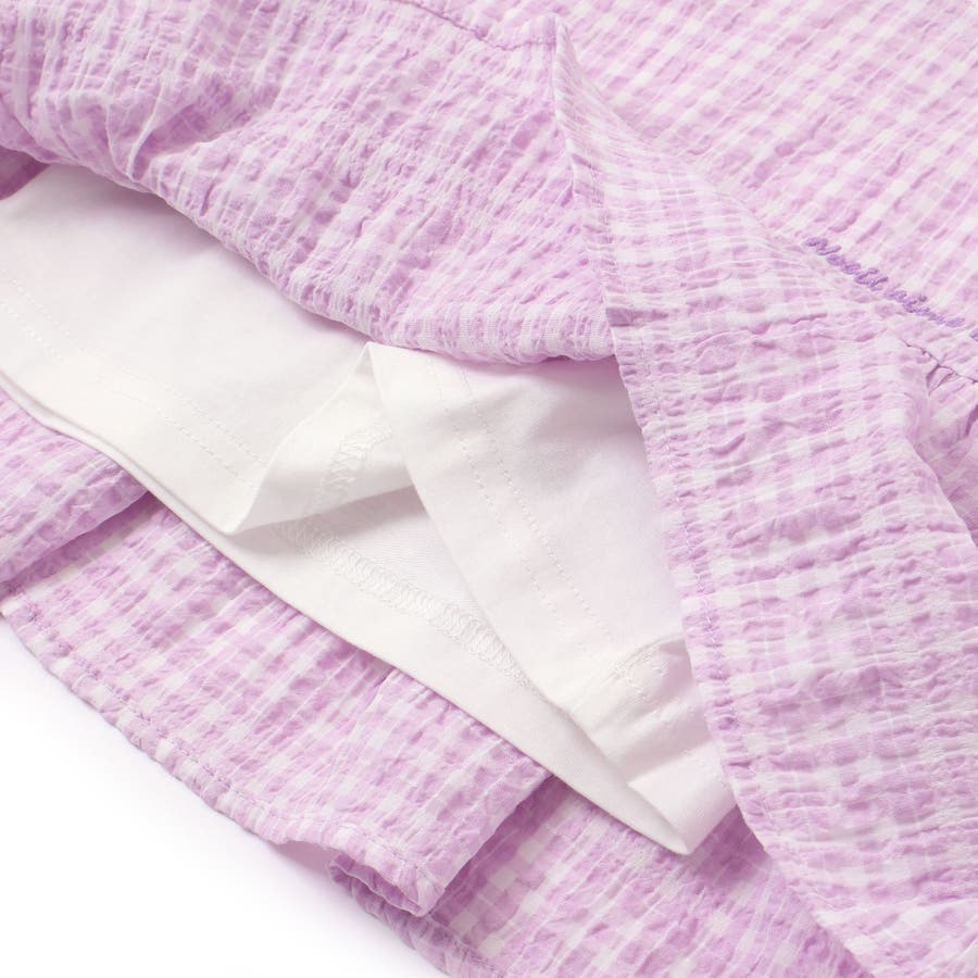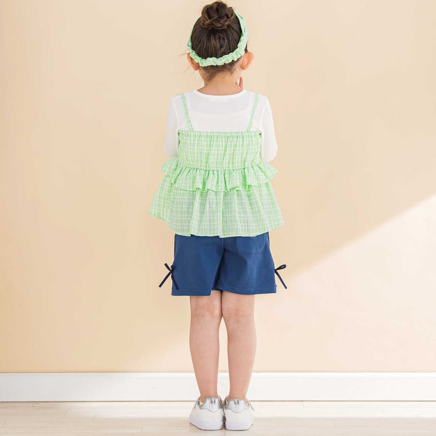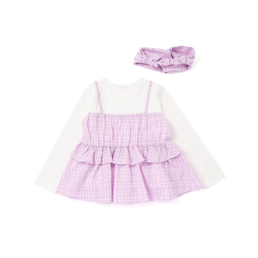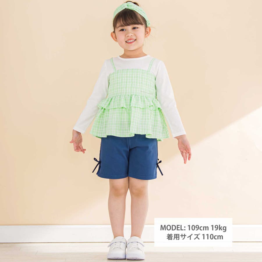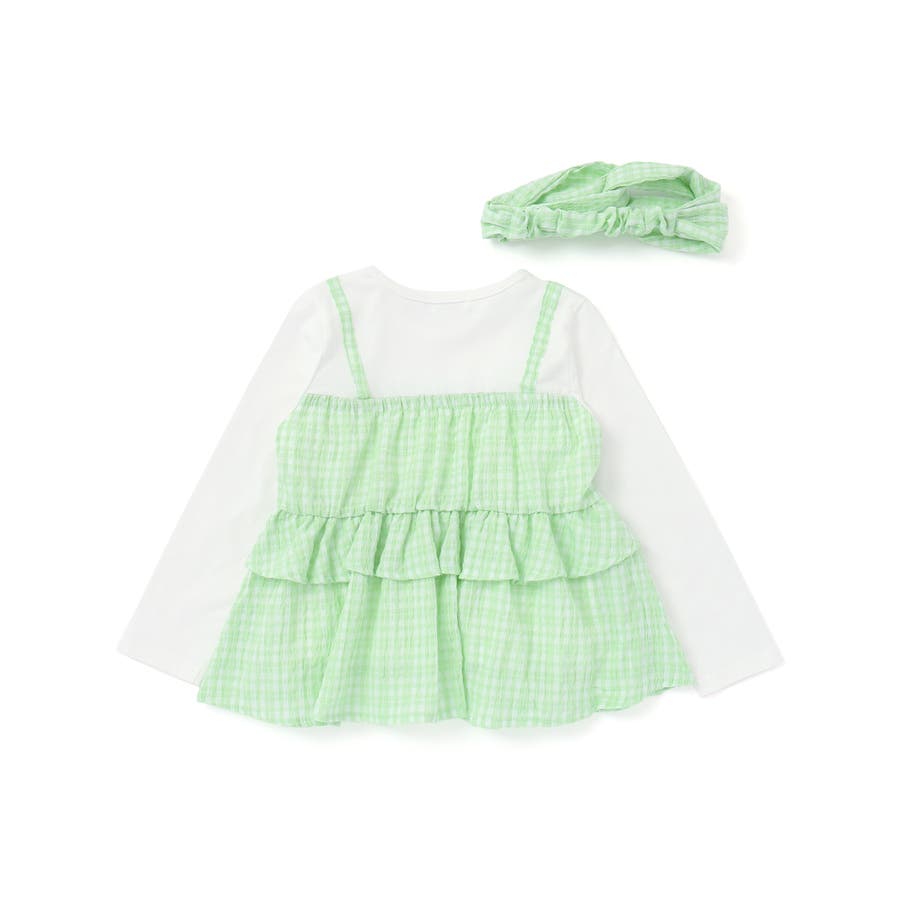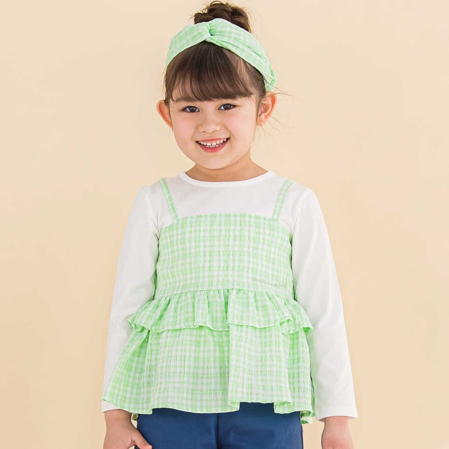 【お揃い】ワッシャーチェックキャミ重ね着風長袖Tシャツ(80~130cm)