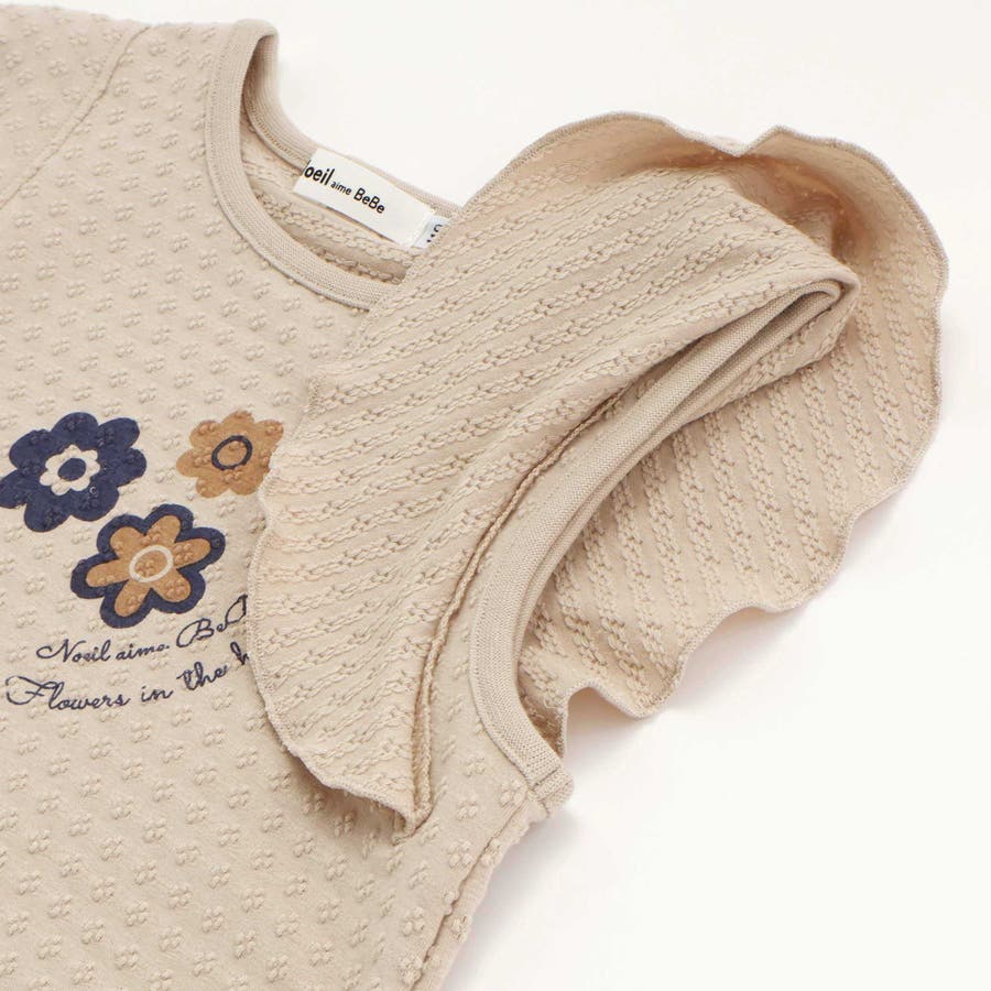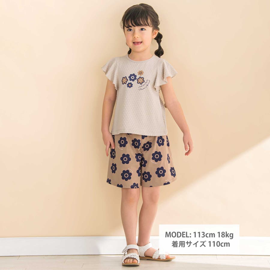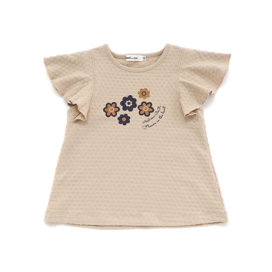 フレアスリーブお花プリント半袖Tシャツ(80~130cm)