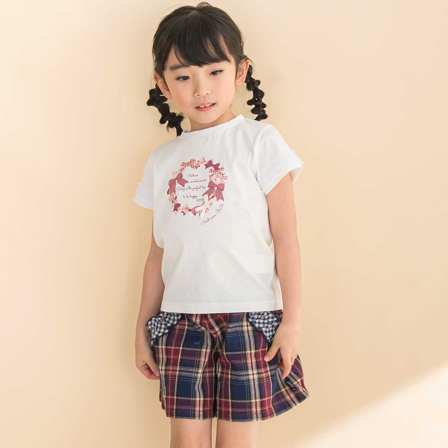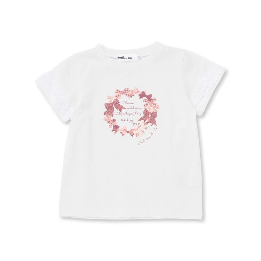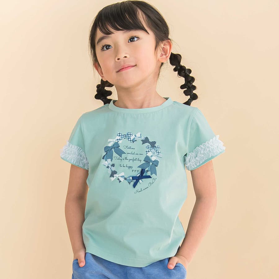天竺袖フリルリボンプリント半袖Tシャツ(80~130cm)
