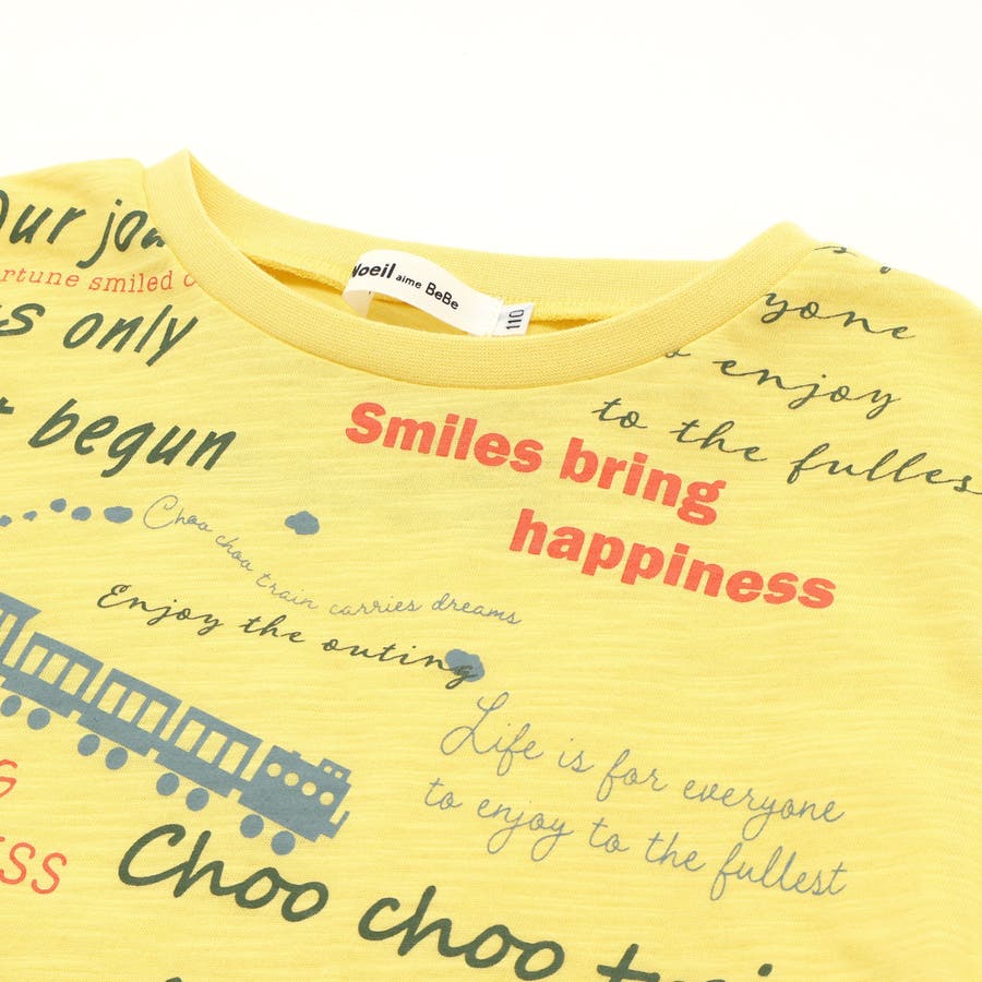 立体感のあるトレインプリントや様々な文章がアクセントに。