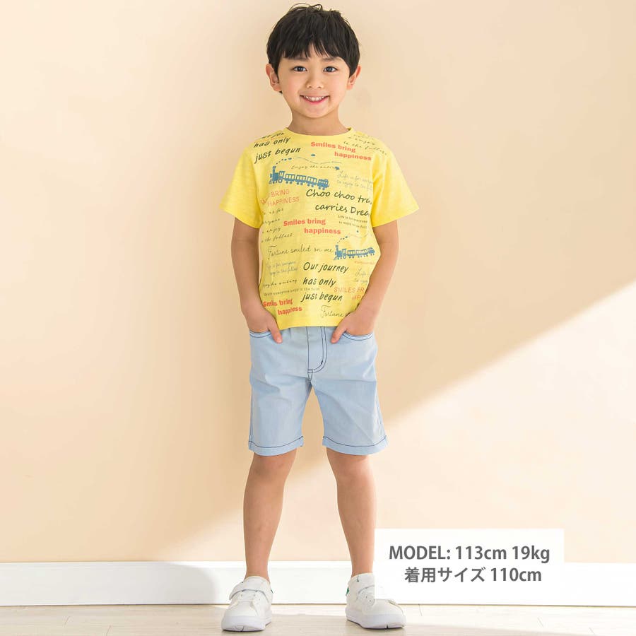 スラブ天竺トレインプリント半袖Tシャツ(80~130cm)