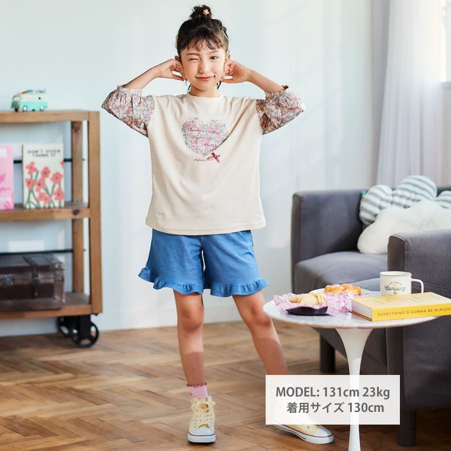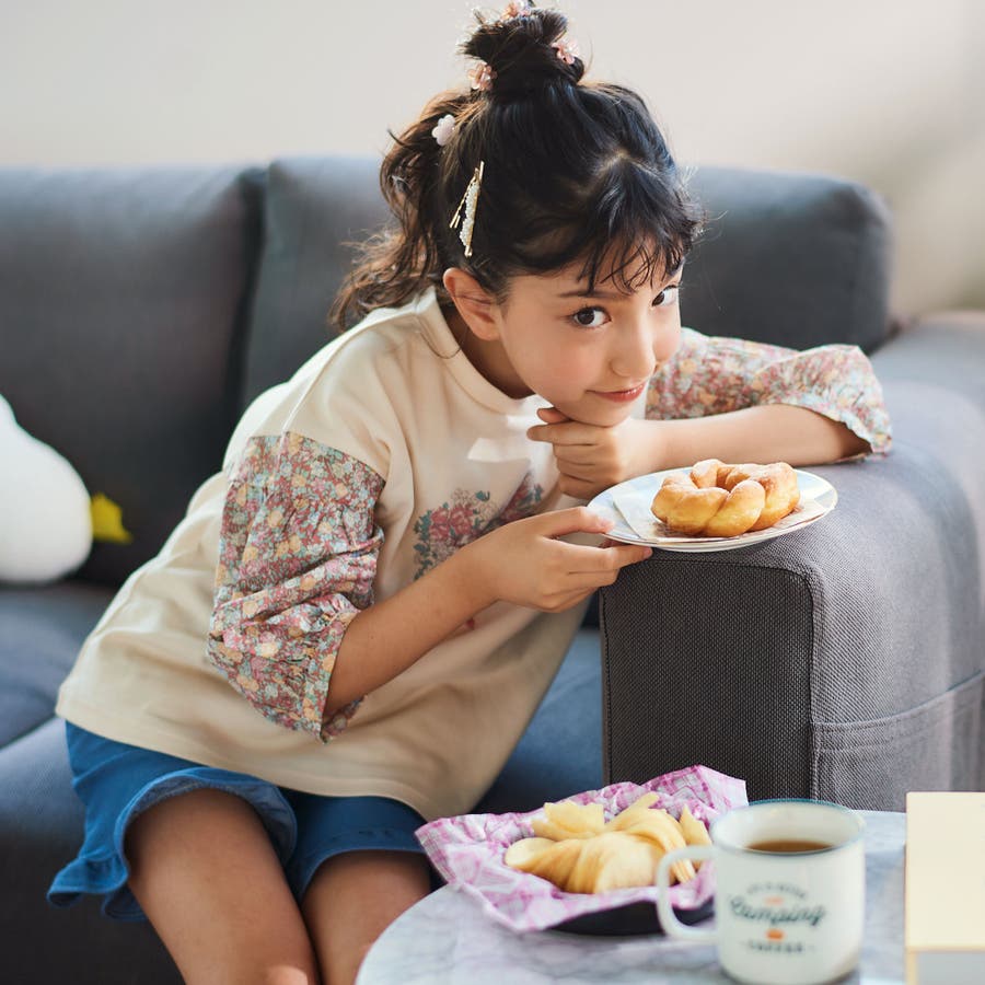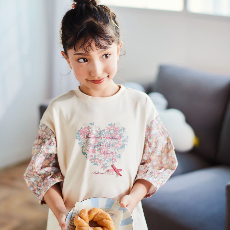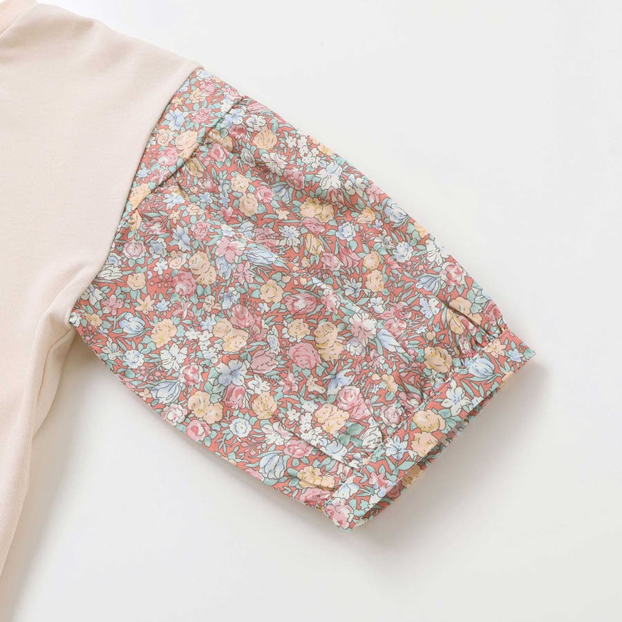 バルーン袖の花柄のプリントが可愛らしい女の子用Tシャツ。