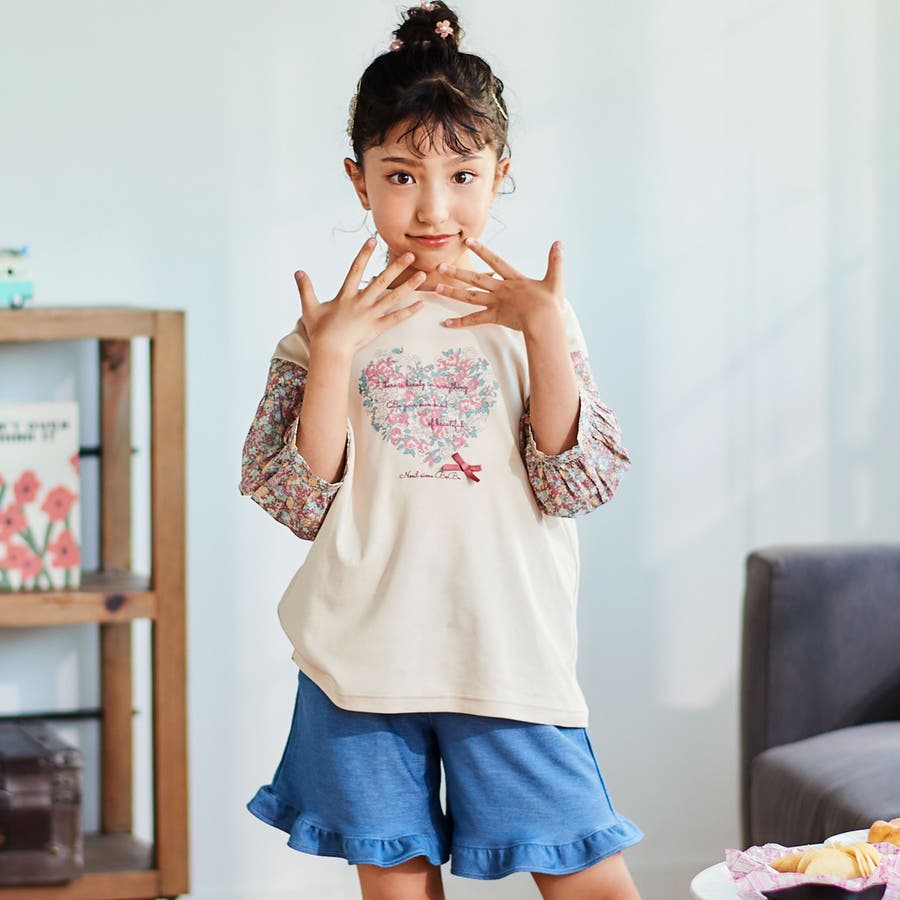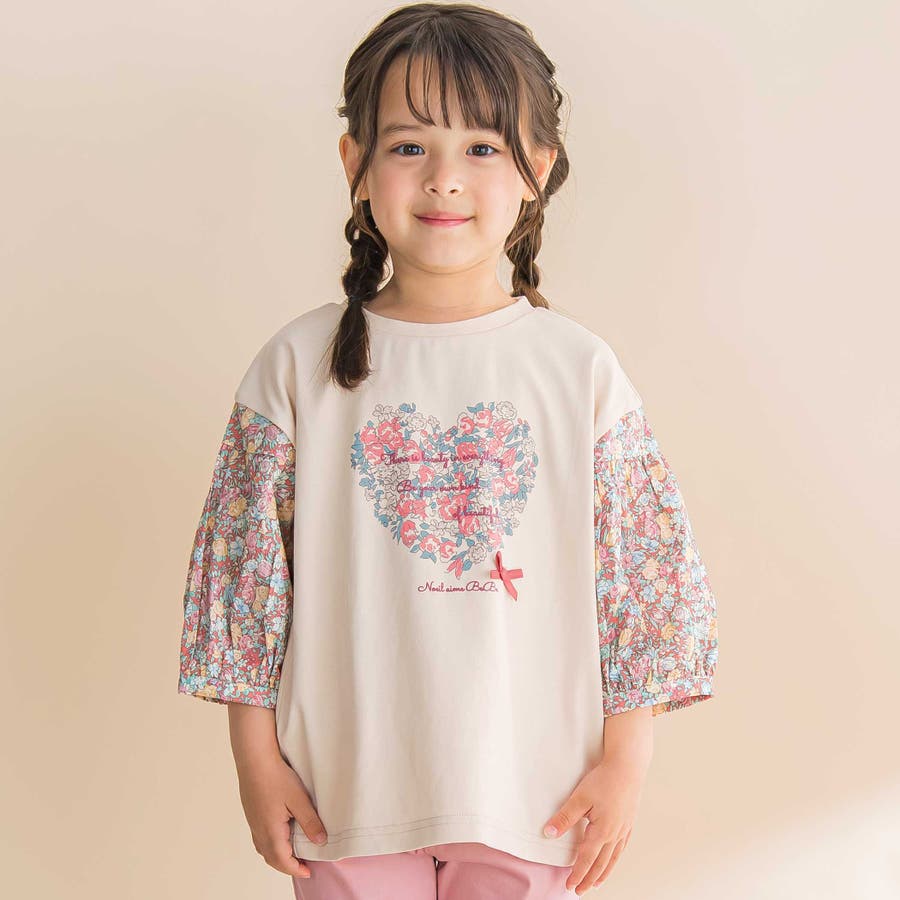 【お揃い】花柄バルーン5分袖スムースTシャツ(80~130cm)