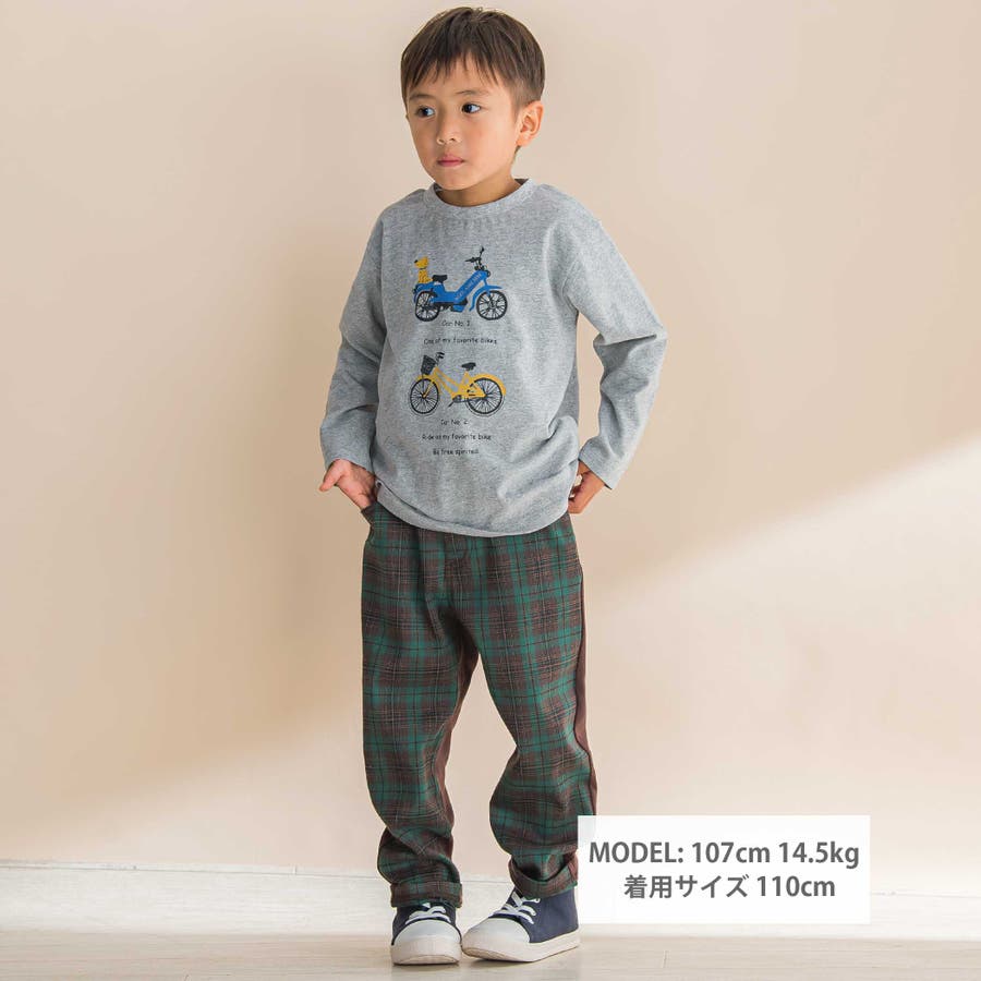 自転車プリント天竺ドロップショルダーTシャツ(80~130cm)