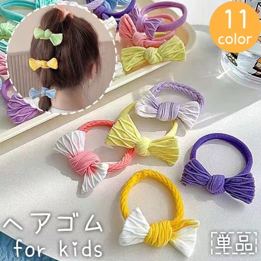 リボンが可愛い子ども用のヘアゴム(単品)です。