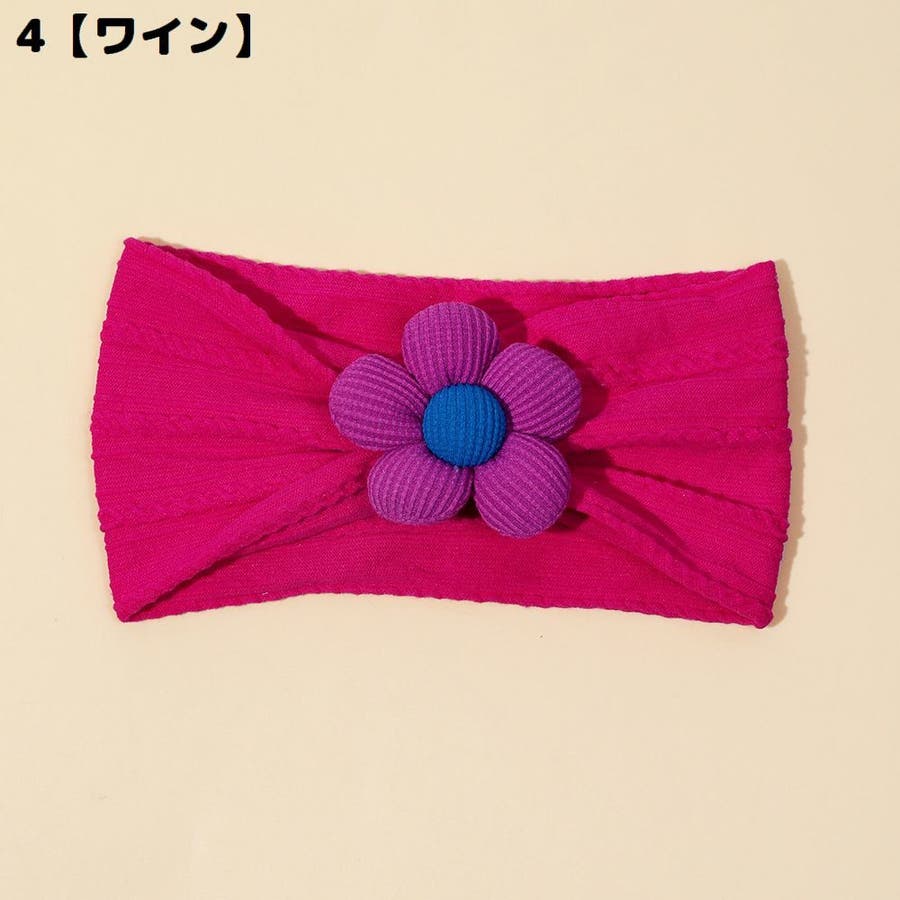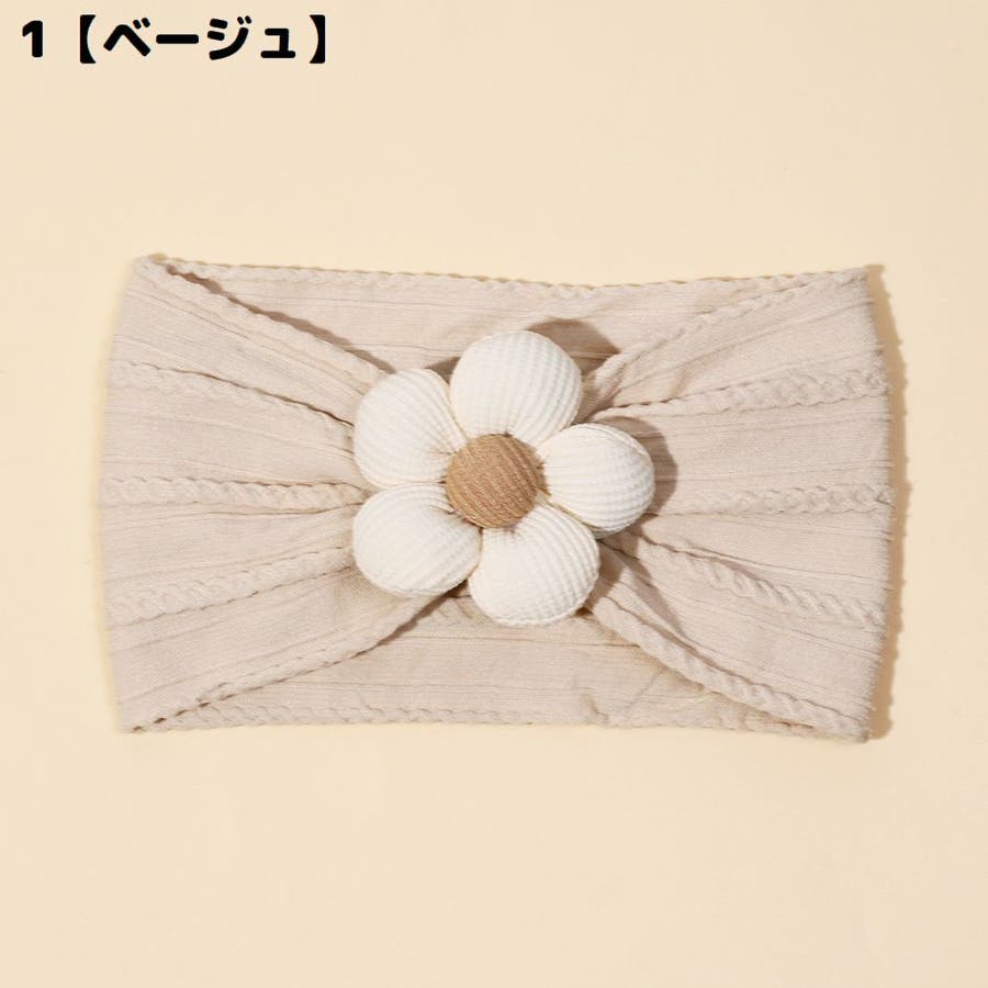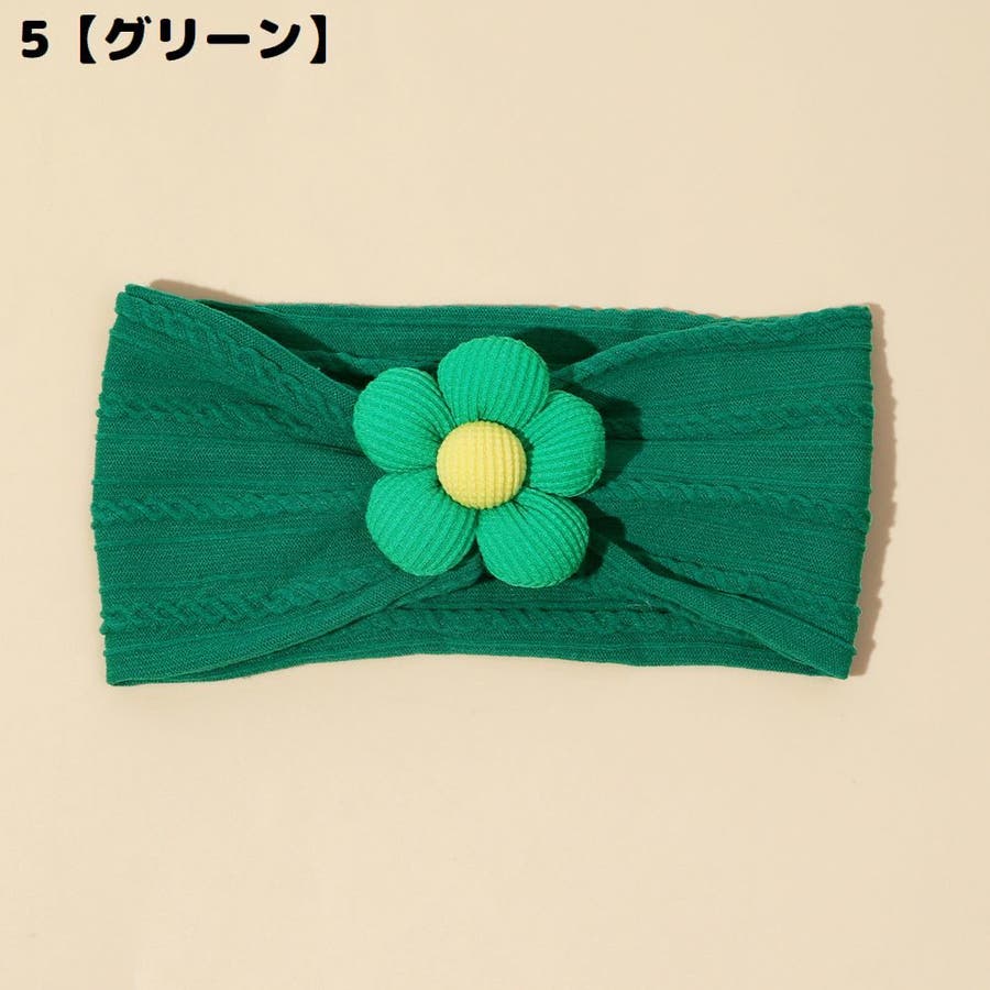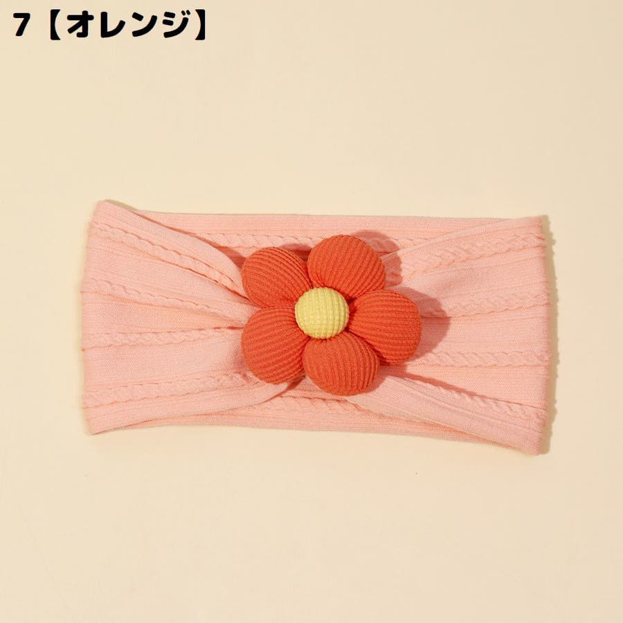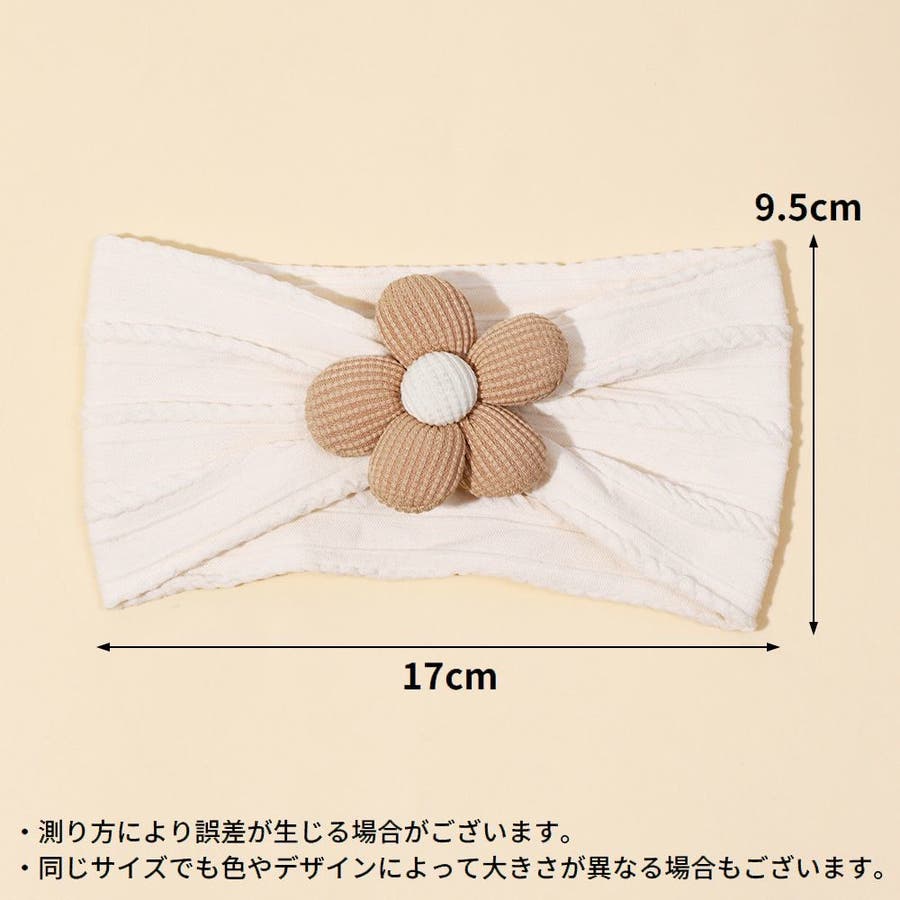 可愛いフラワーチャーム付きの子ども用幅広ヘアバンドです。