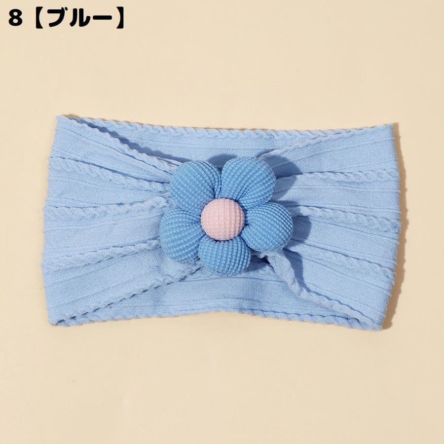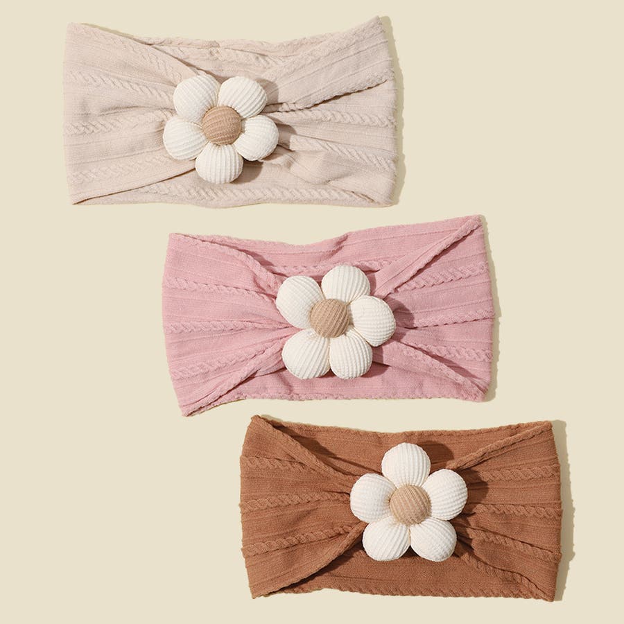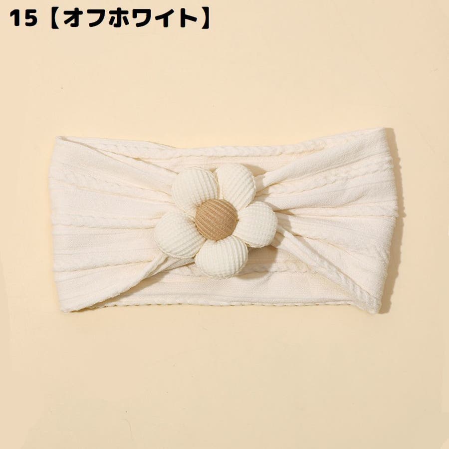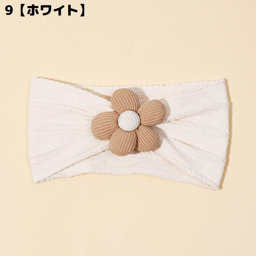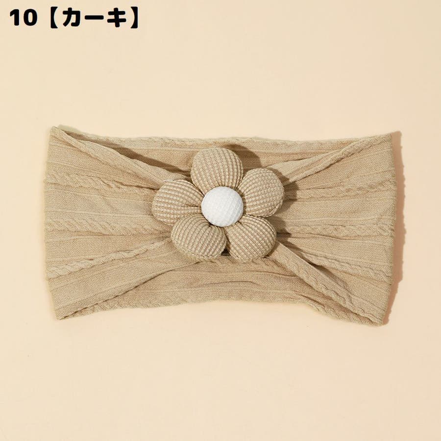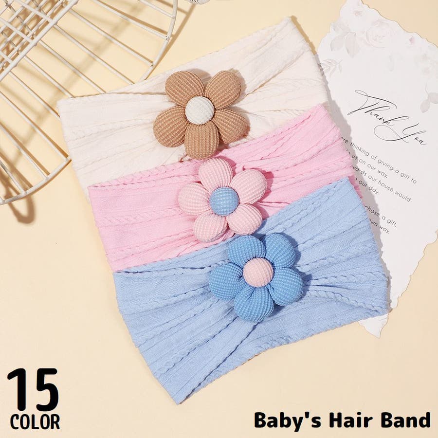 可愛いフラワーチャーム付きの子ども用幅広ヘアバンドです。