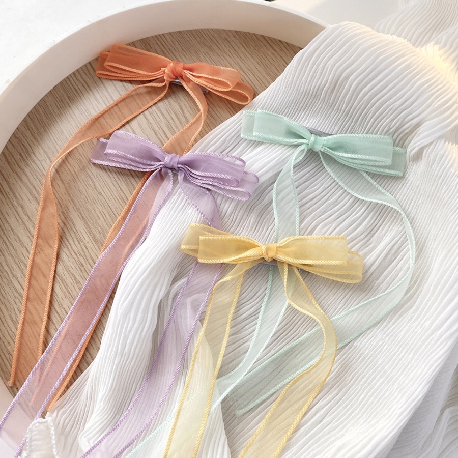 長めのリボンがワンポイントになっており、そのまま使っても、ヘアアレンジの道具としても使いやすいアイテムになっています。
