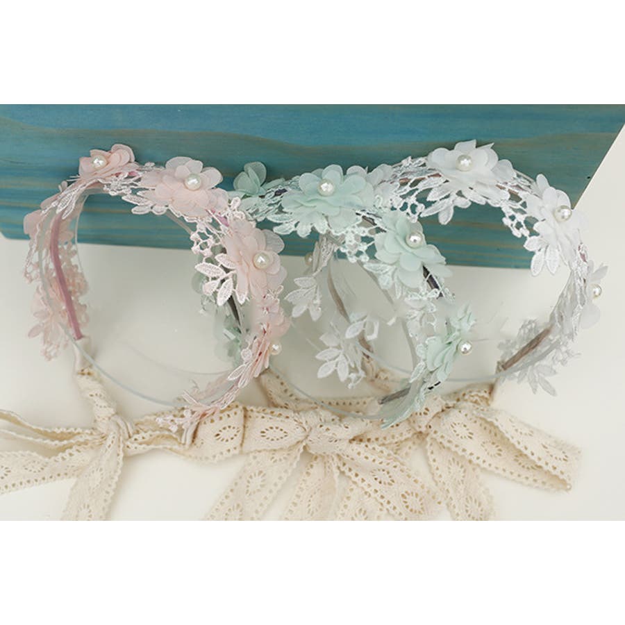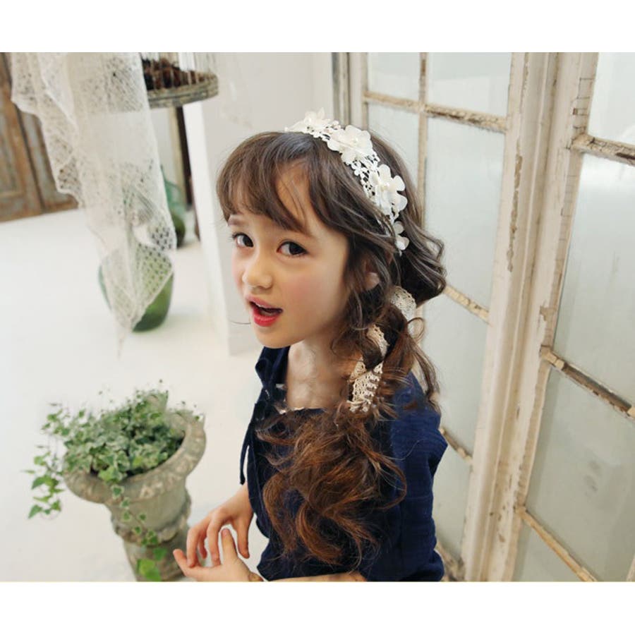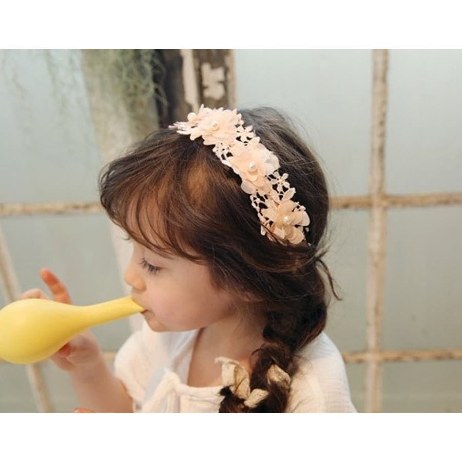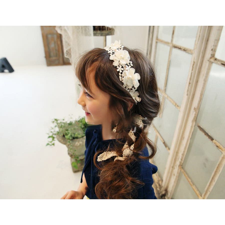 フラワーレースが可愛い子供用カチューシャです。