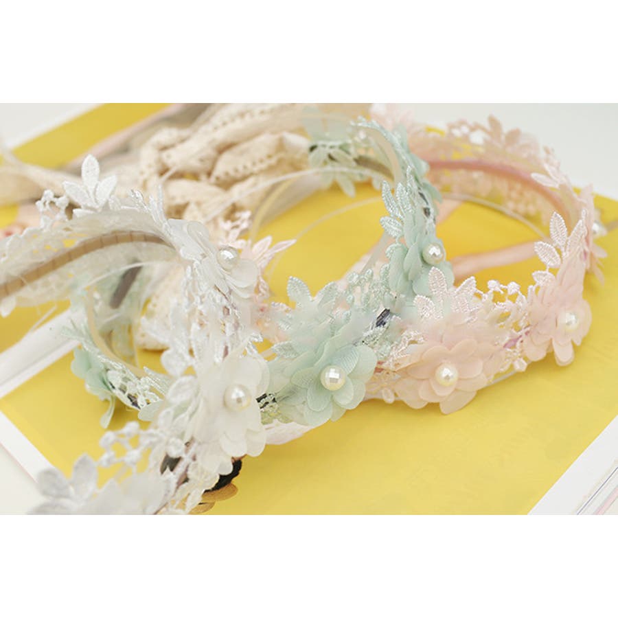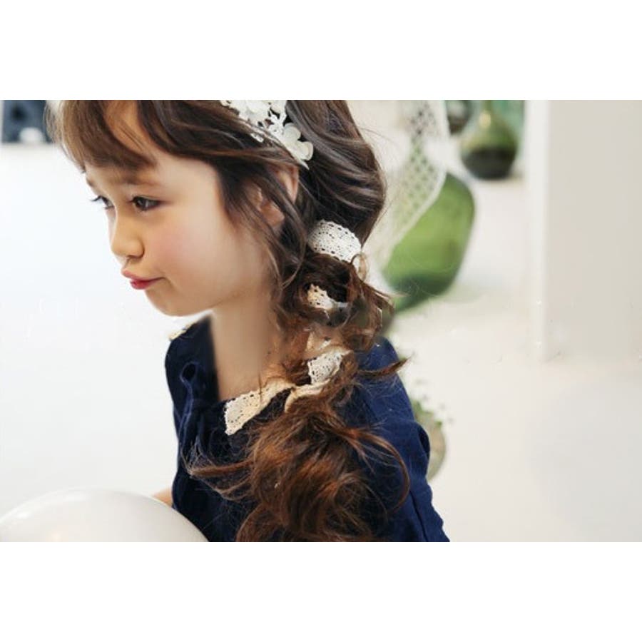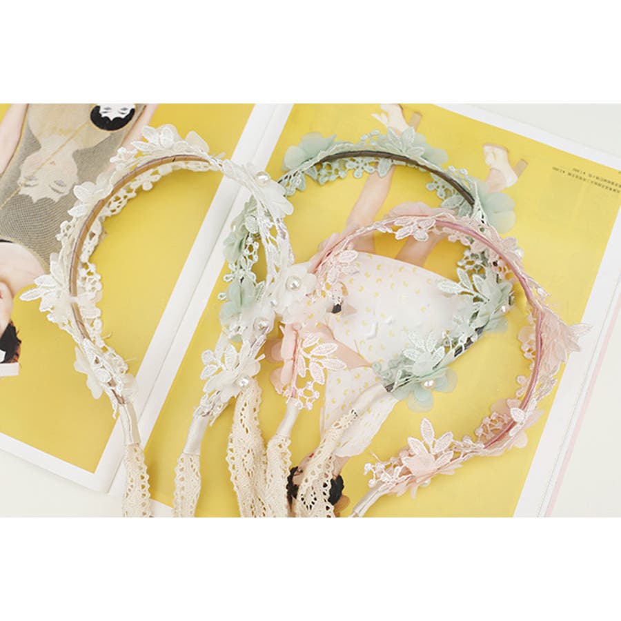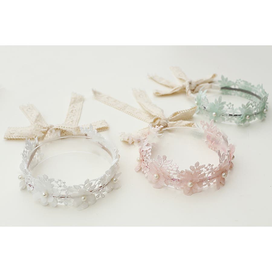 フラワーレースが可愛い子供用カチューシャです。