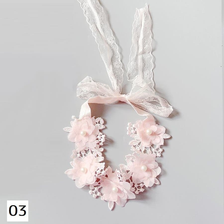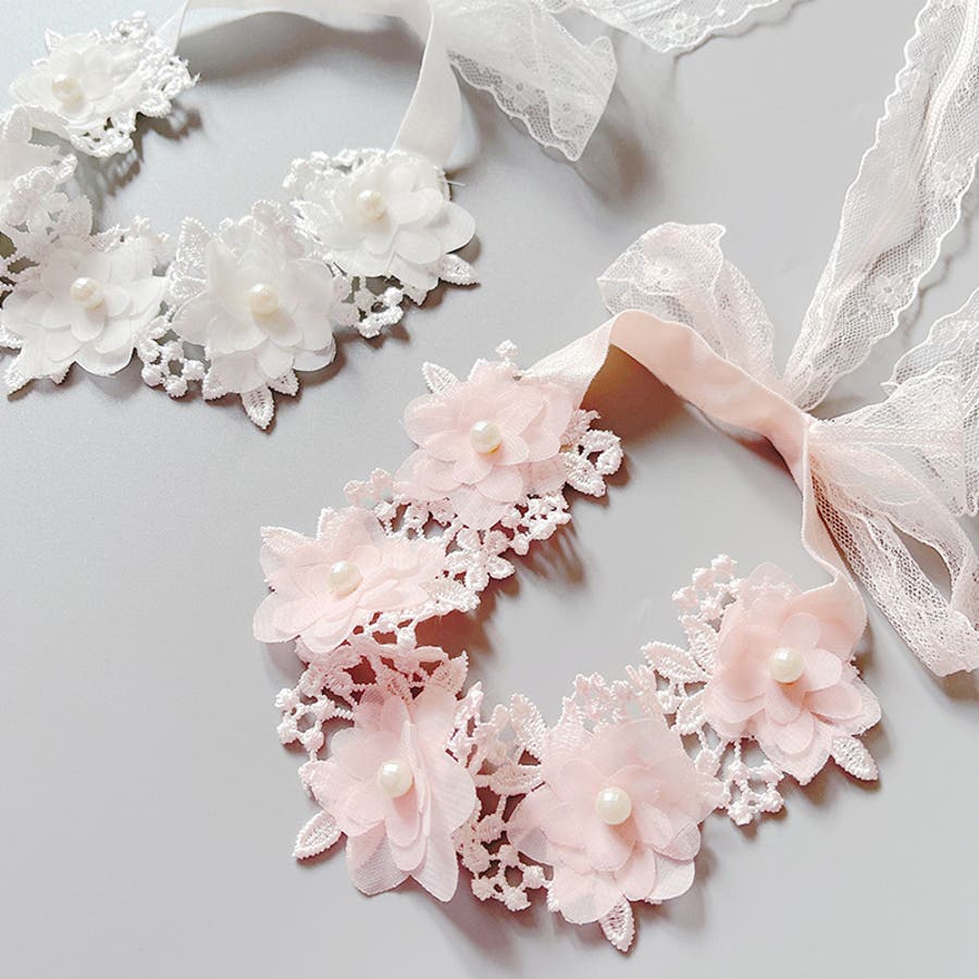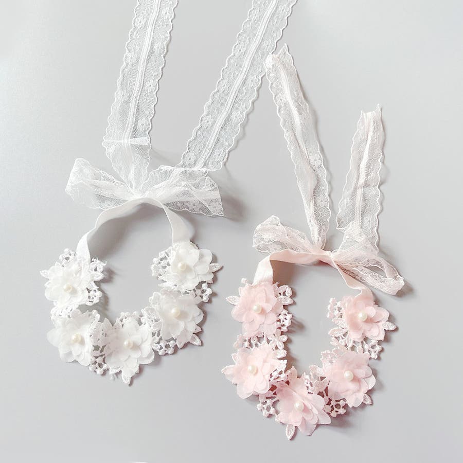 レースのリボンやフラワーモチーフの飾りが華やかなデザイン♪