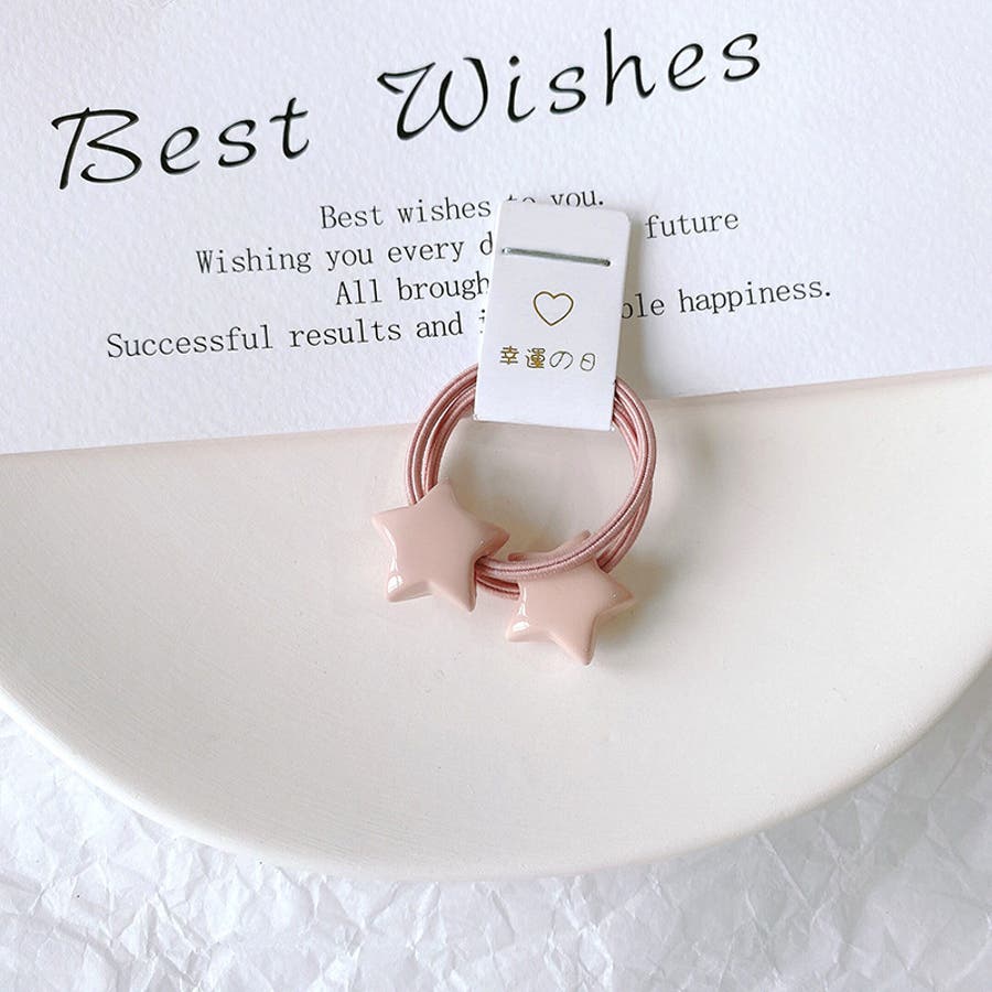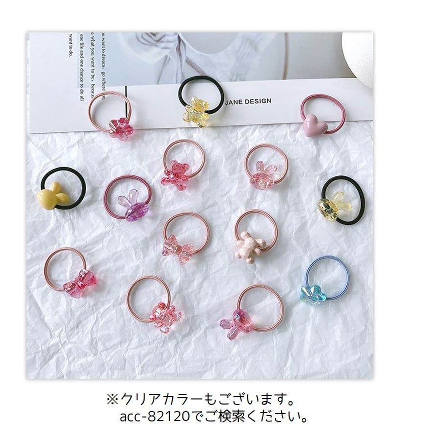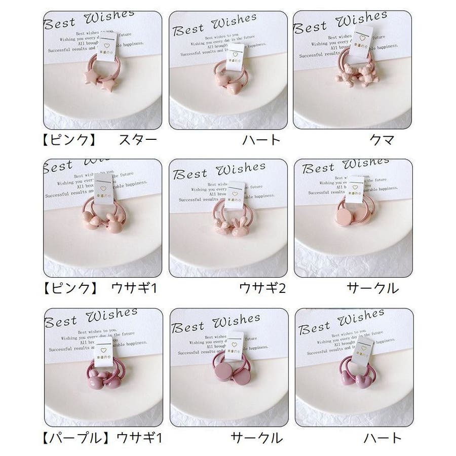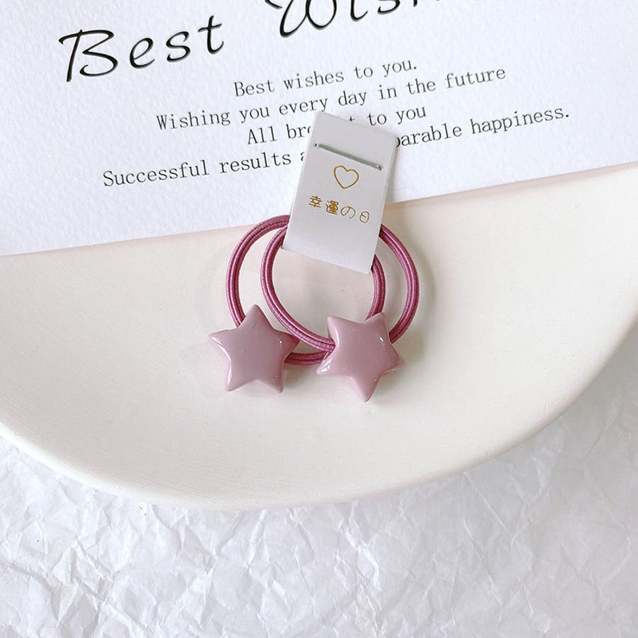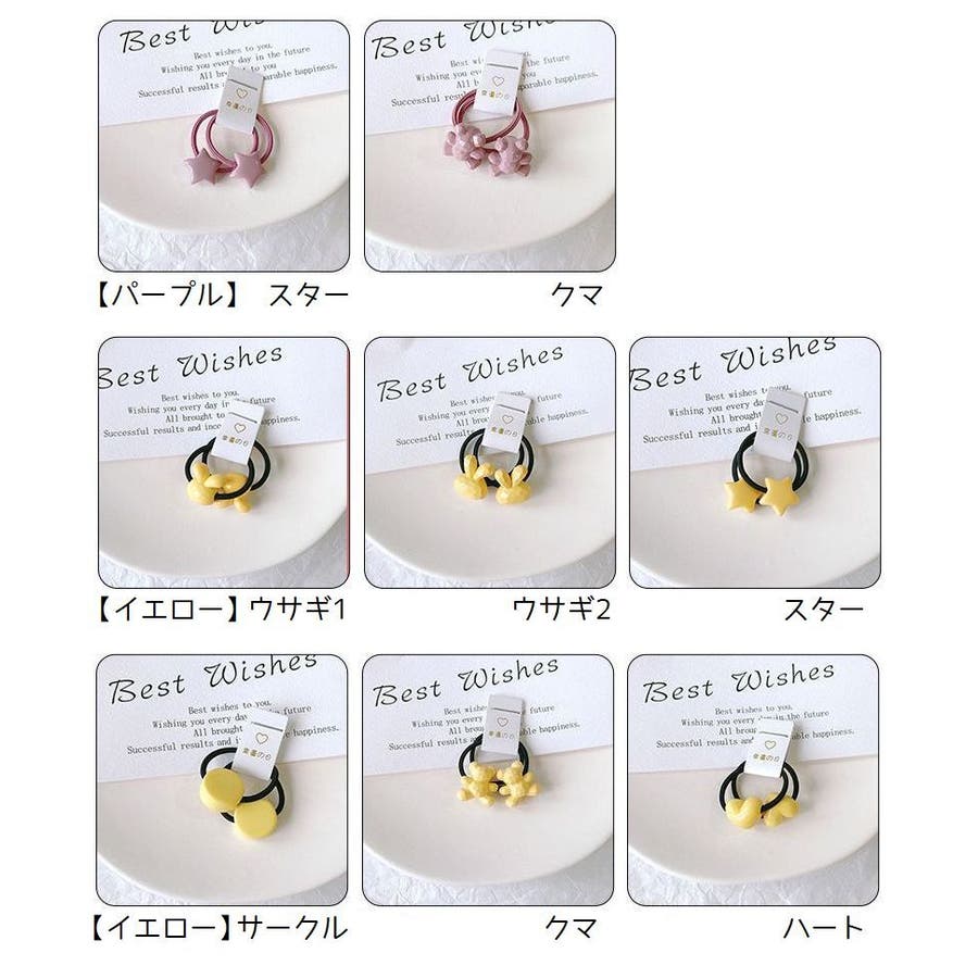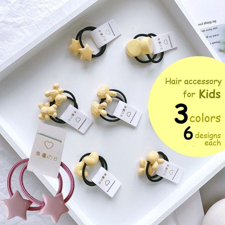 星やハート、動物などの可愛いモチーフ付きヘアゴム・2本組。