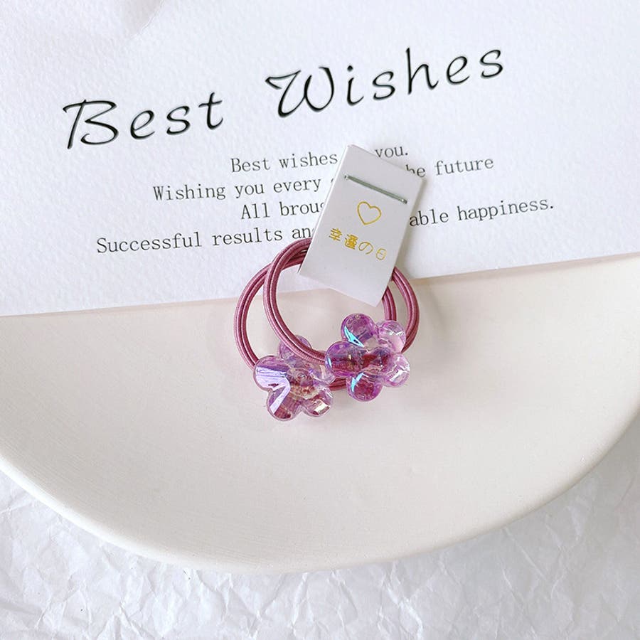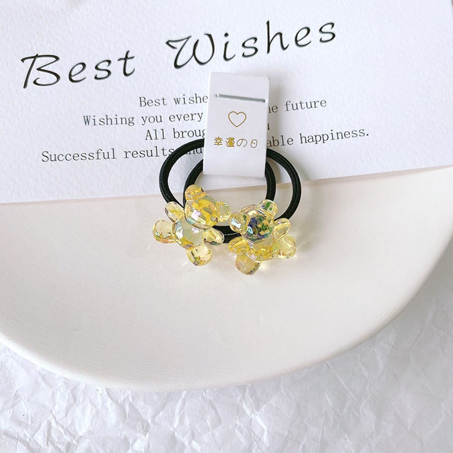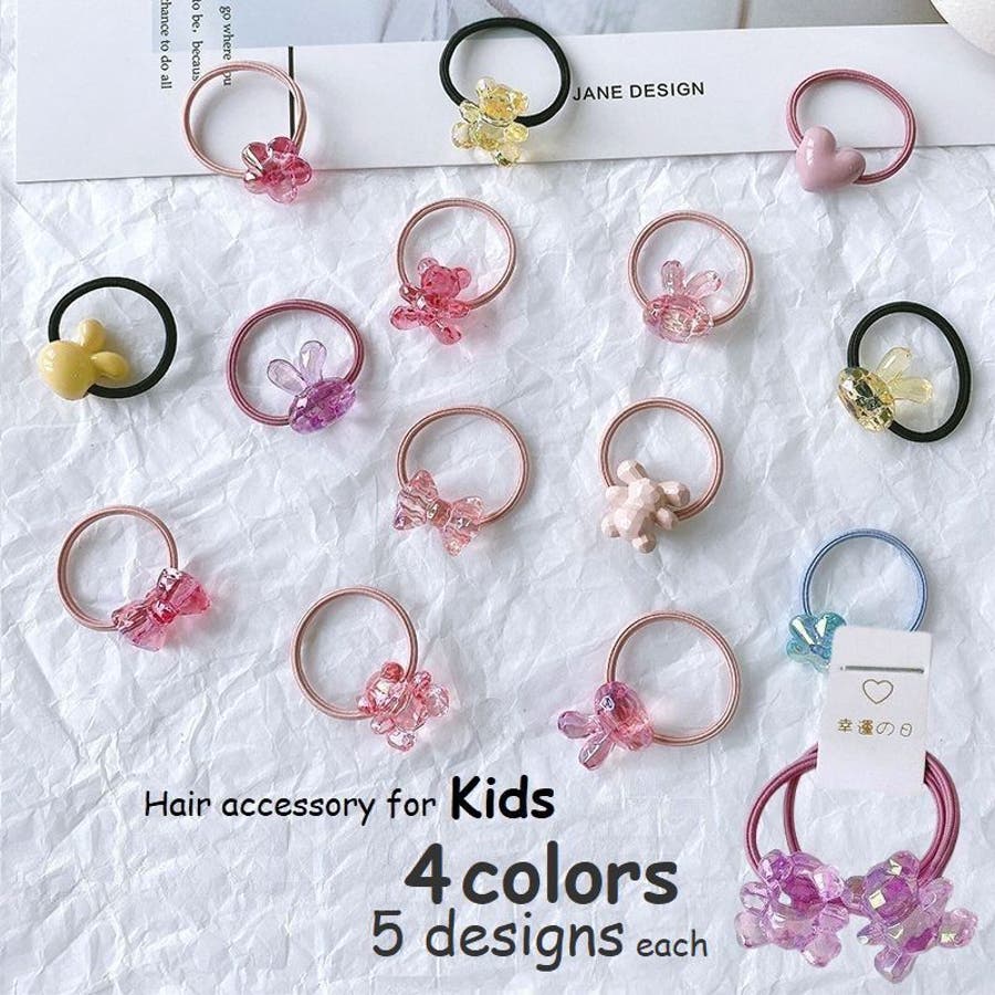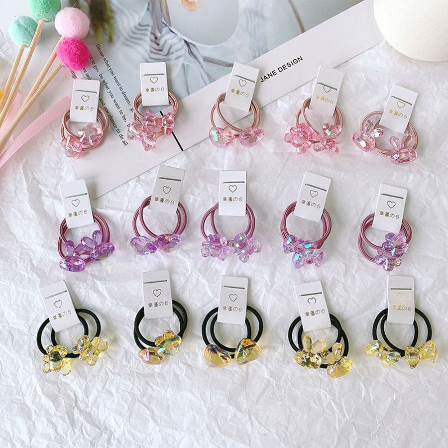 お花やリボン、動物などの可愛いモチーフ付きヘアゴム・2本組。
