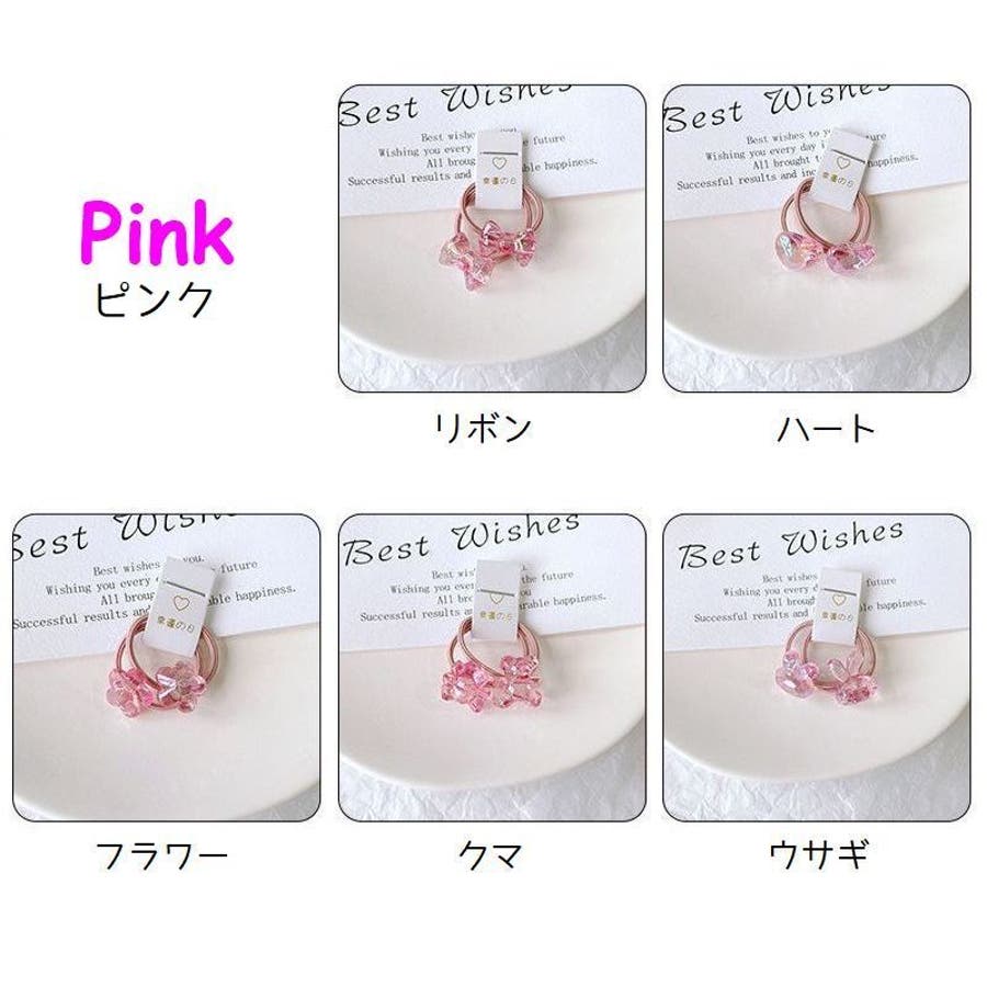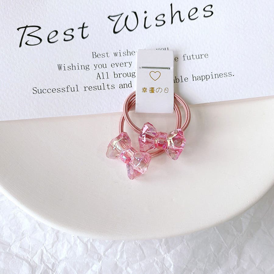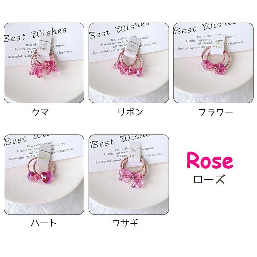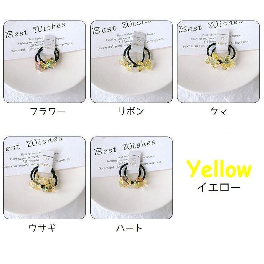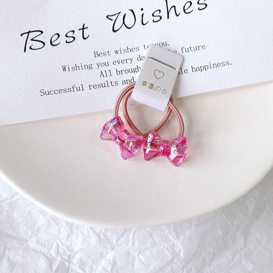 お花やリボン、動物などの可愛いモチーフ付きヘアゴム・2本組。