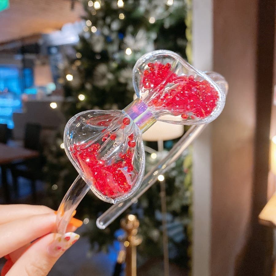 カチューシャ ビーズ入り リボン