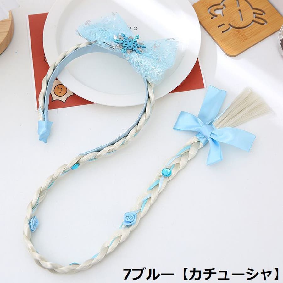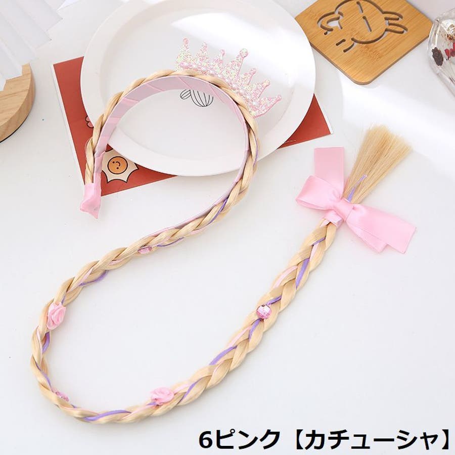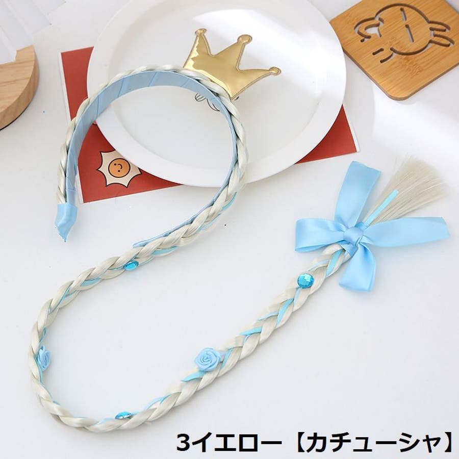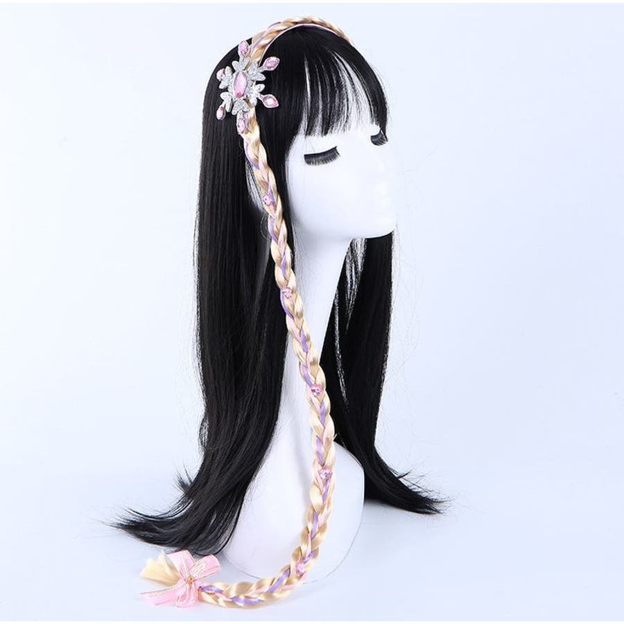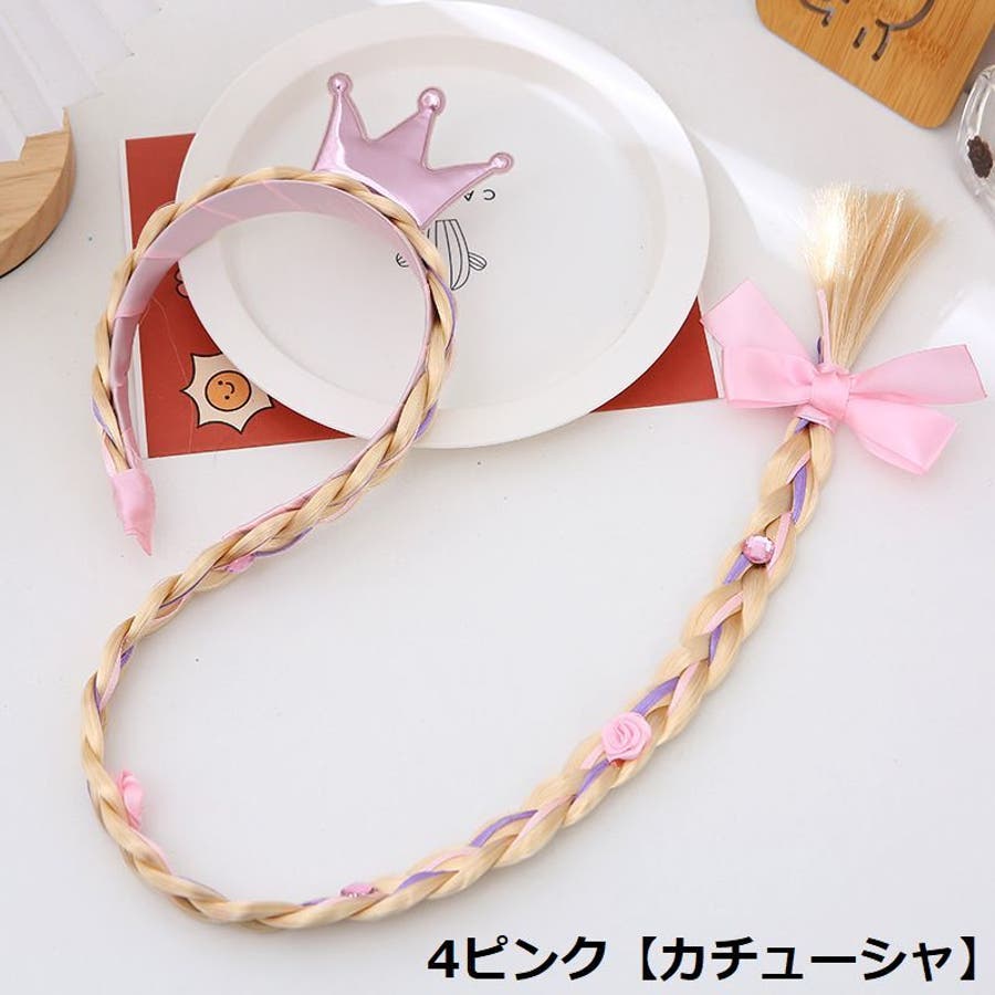三つ編みウィッグ付きキッズ・ジュニア用カチューシャ/ヘアゴムです。