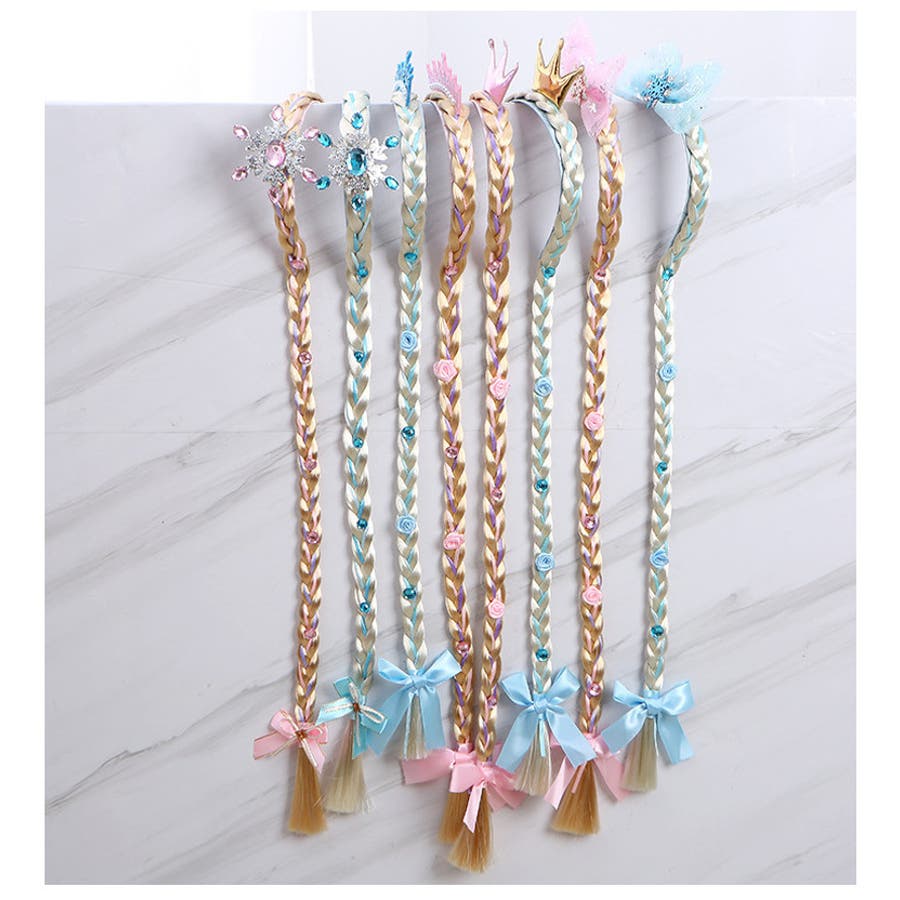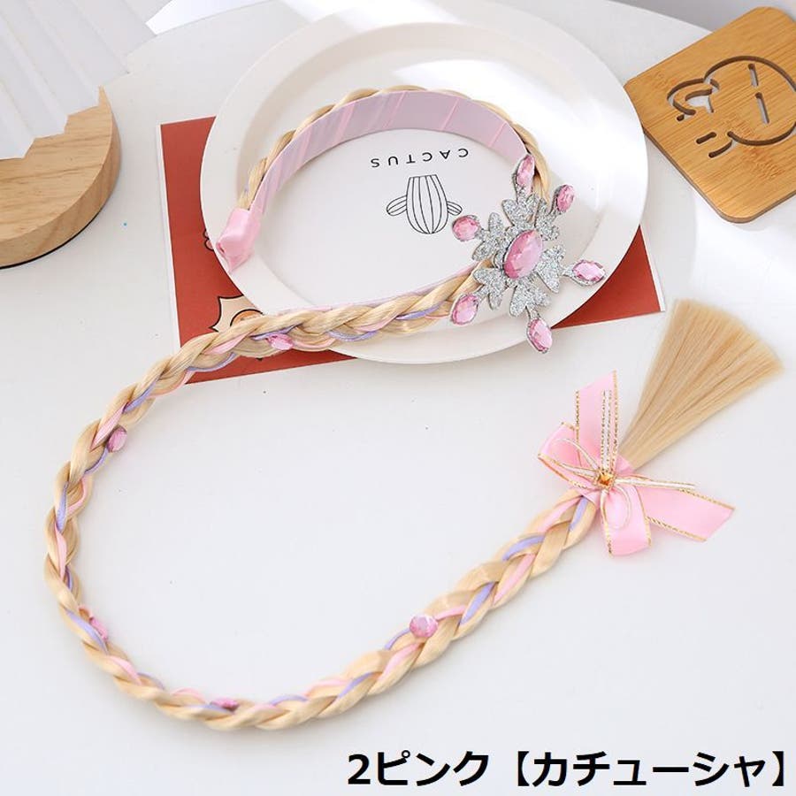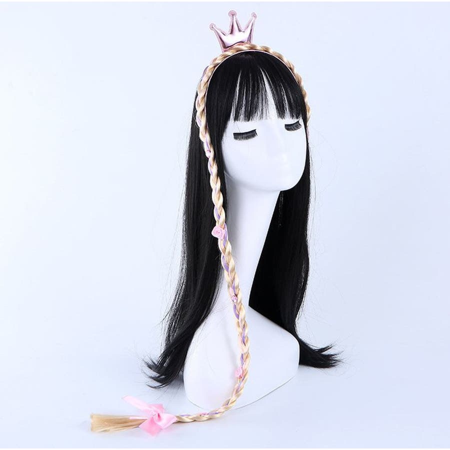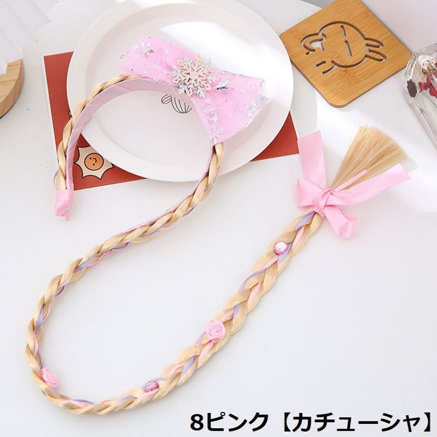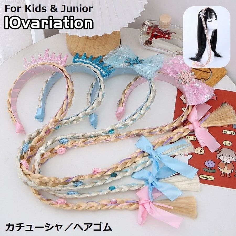 三つ編みウィッグ付きキッズ・ジュニア用カチューシャ/ヘアゴムです。