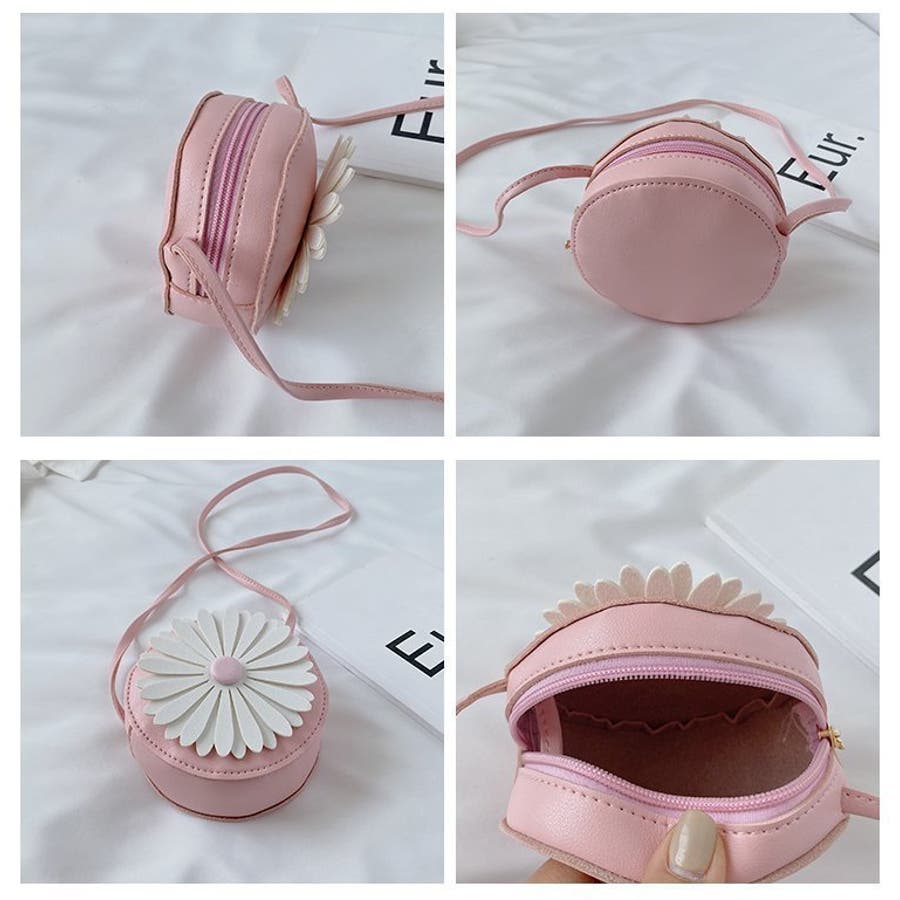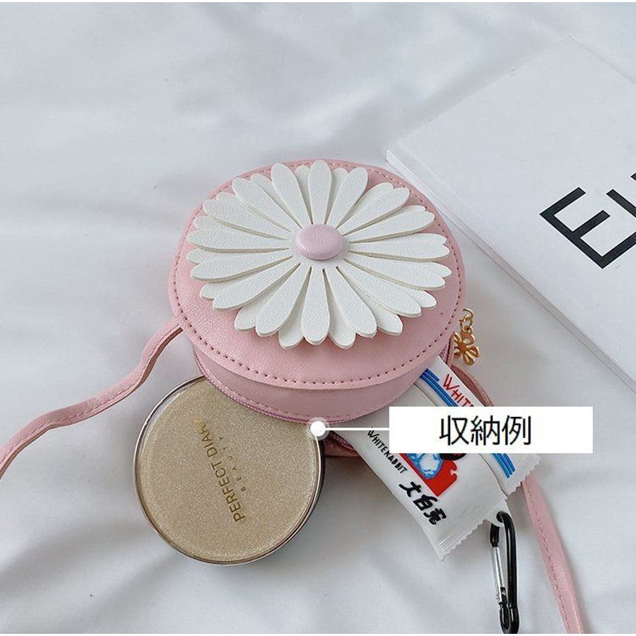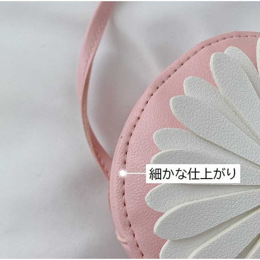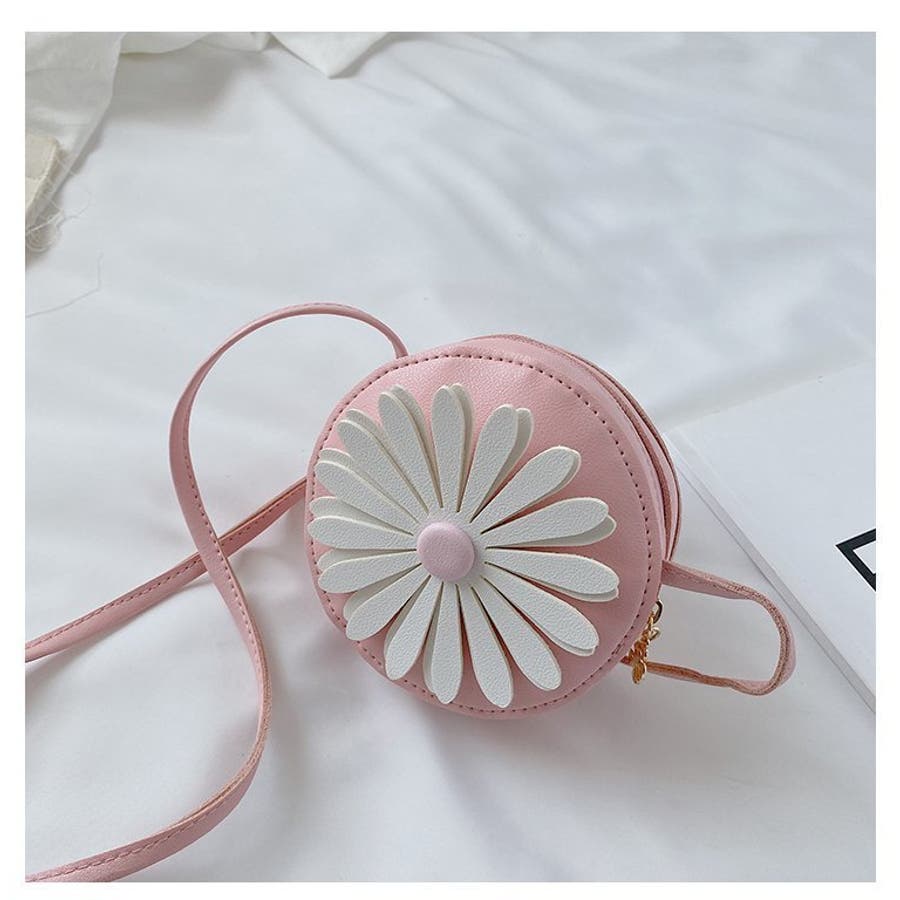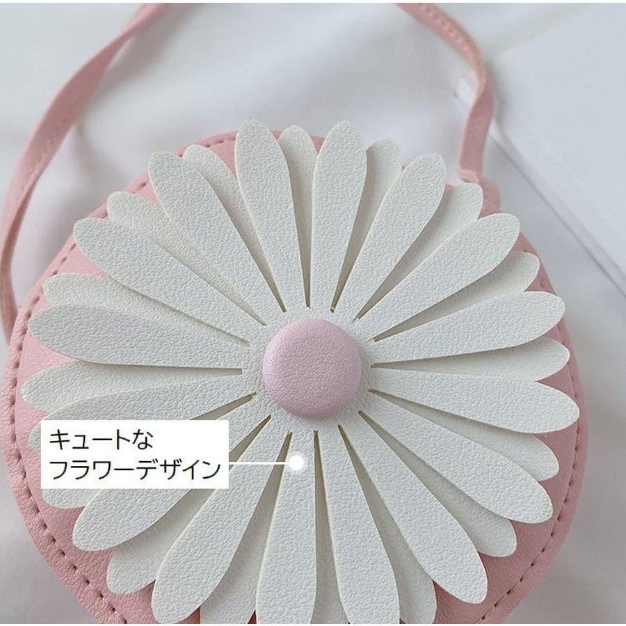 丸型にフラワーデザインが可愛らしい子供用ポシェットです。