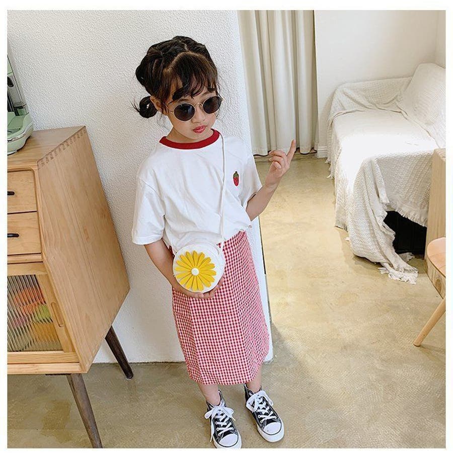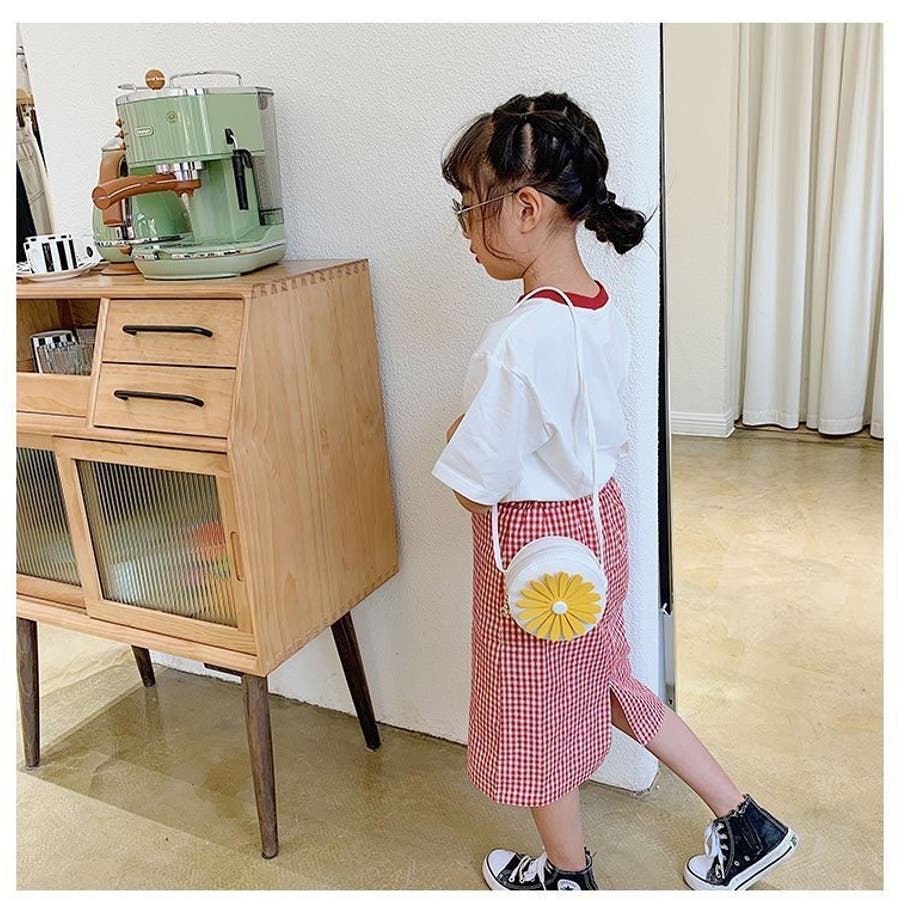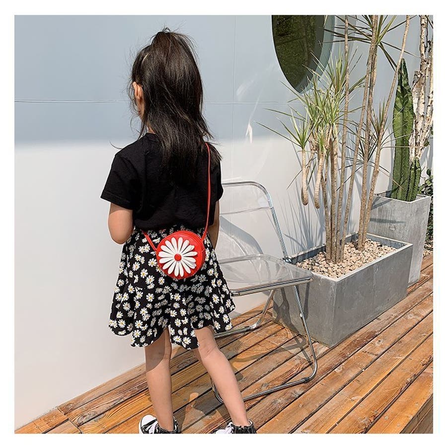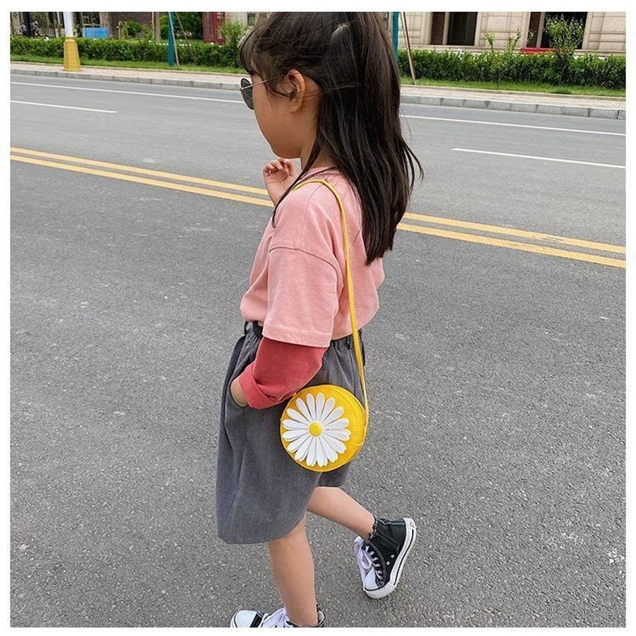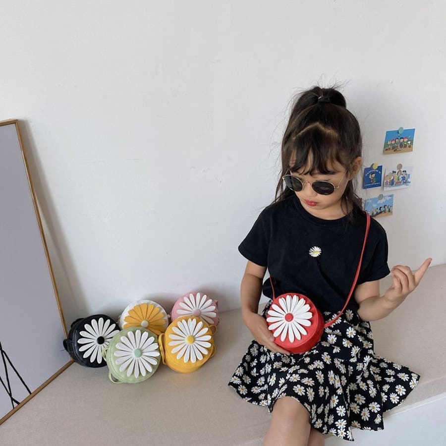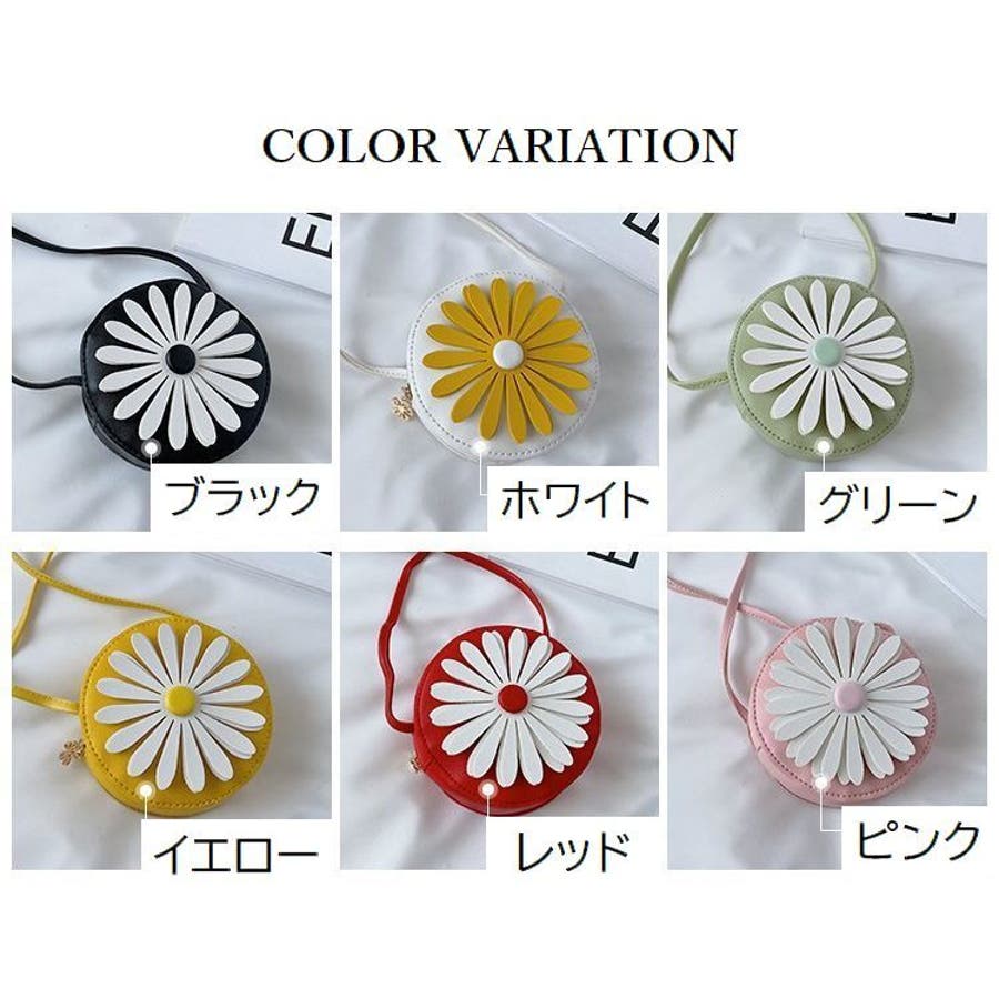 丸型にフラワーデザインが可愛らしい子供用ポシェットです。
