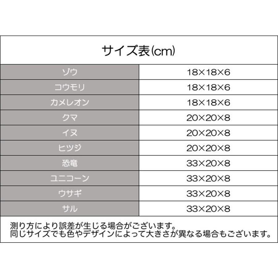 | デザイン | コウモリ / クマ×ブルー / クマ×ピンク / カメレオン / 恐竜 / イヌ / ライオン / サル / フクロウ / ヒツジ / ユニコーン / ウサギ / ゾウ |