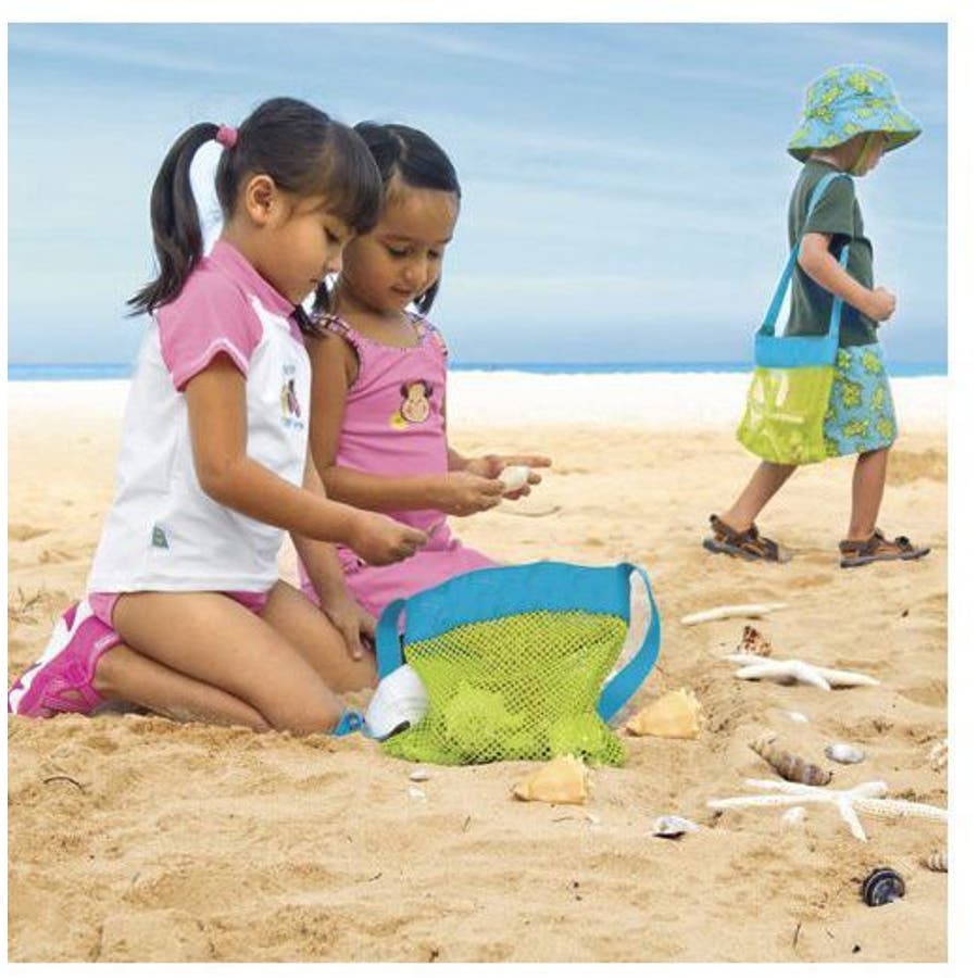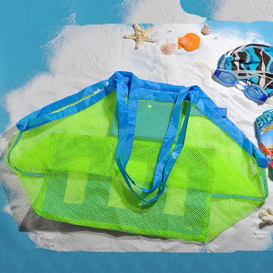 砂場セットや水遊びグッズが収納できる、メッシュ素材の大型ビーチバッグです。